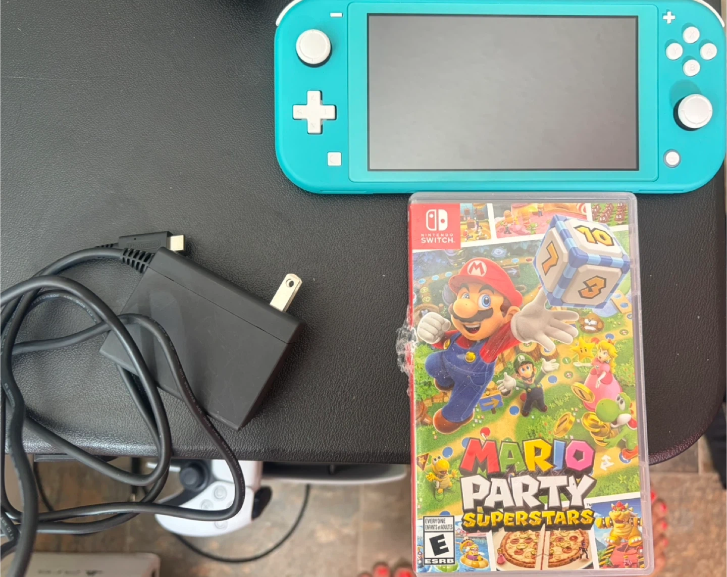 Turquoise Nintendo Switch Lite and Mario Party Superstars game comes with original charger selling both together for $240 pick up only In Falconridge ne