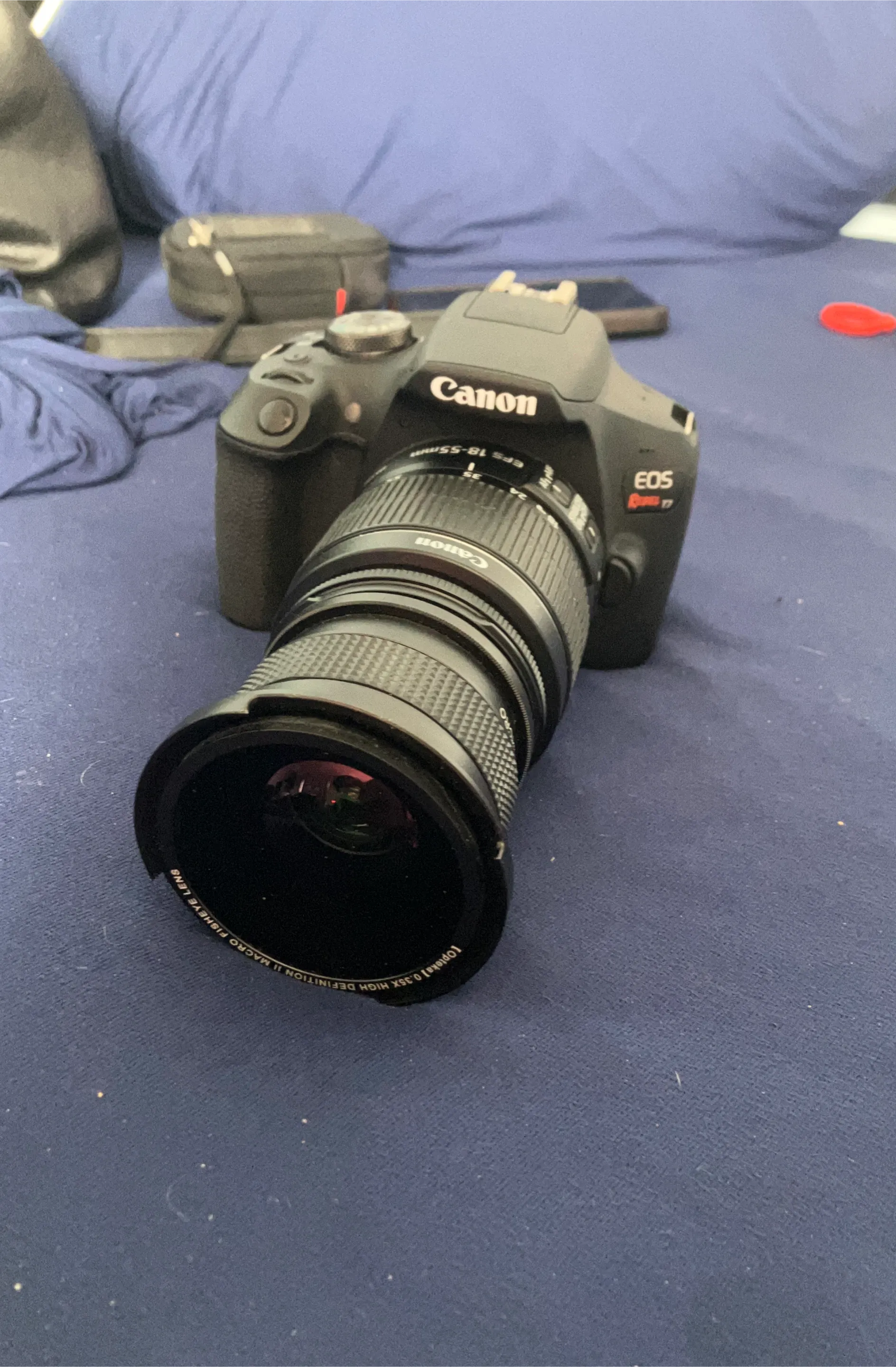 Lens: EF-S 18-55mm f/3.5-5.6 IS II, often included with supplementary lenses (such as the Opteka fisheye).
