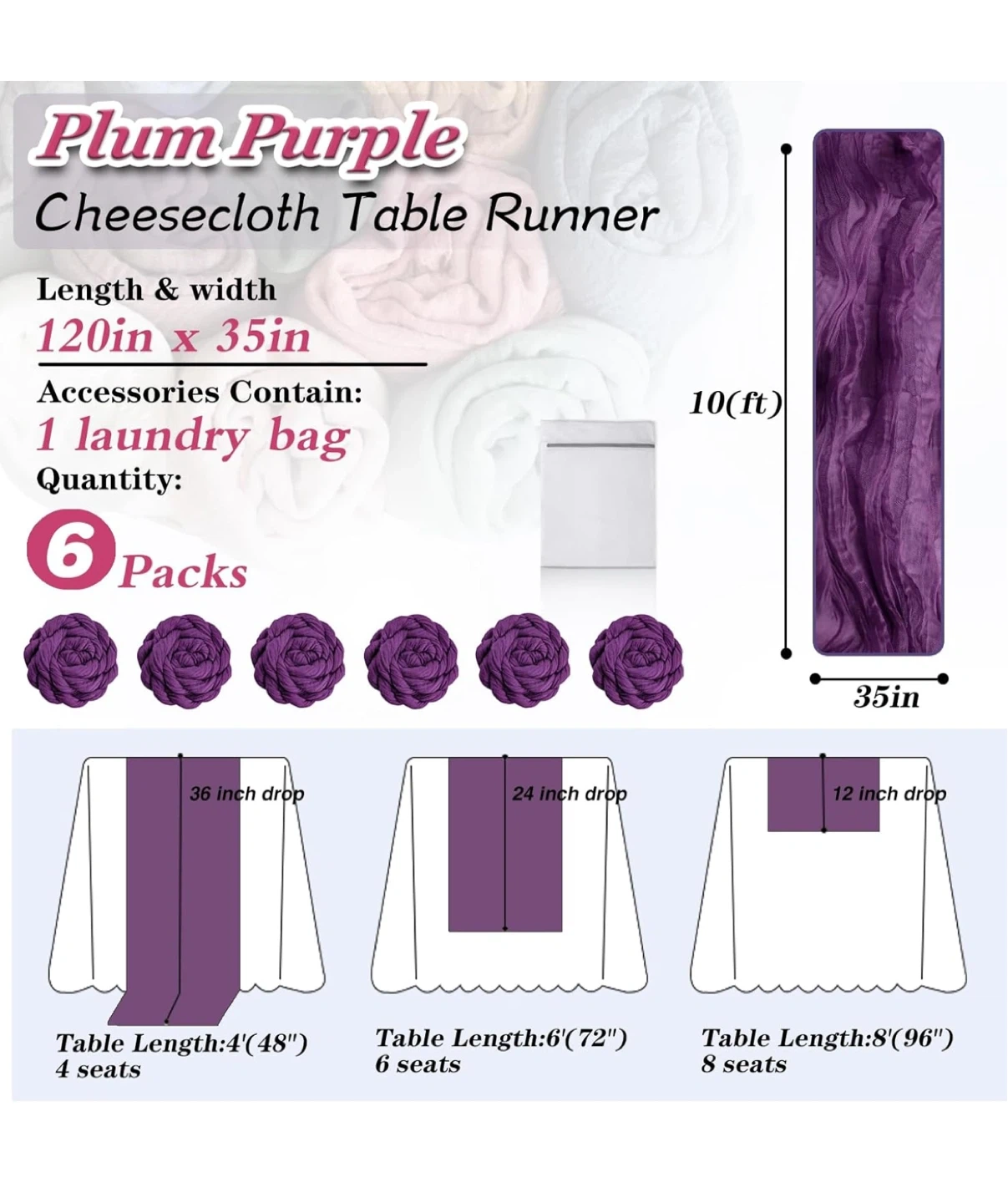 6 Pcs Plum Purple Cheesecloth Table Runner