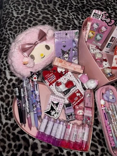 This cute stationery lot features popular characters from the Sanrio franchise such as Hello Kitty, My Melody, and Kuromi. The stationery items are colorful and made of materials like stainless steel, plastic, and acrylic, making them durable and long-lasting. Perfect for fans of Nippon Animation and Sanrio, this lot adds a touch of cuteness to any workspace or collection. Includes pen, mechanical, pencils, erasers, two mini stapler, two pencil boxes, ID lanyard.