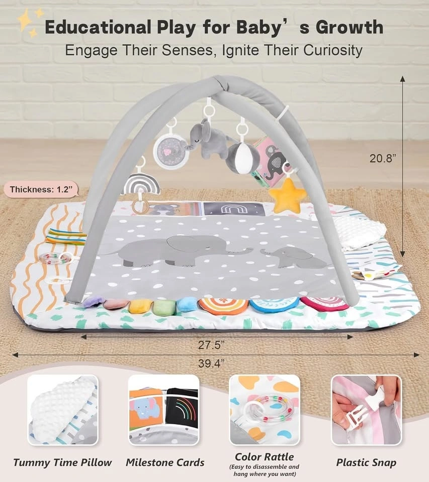 NEW~Baby Mat w/ Pillow, 6 Toys + Cards, Elephant (0-18M)