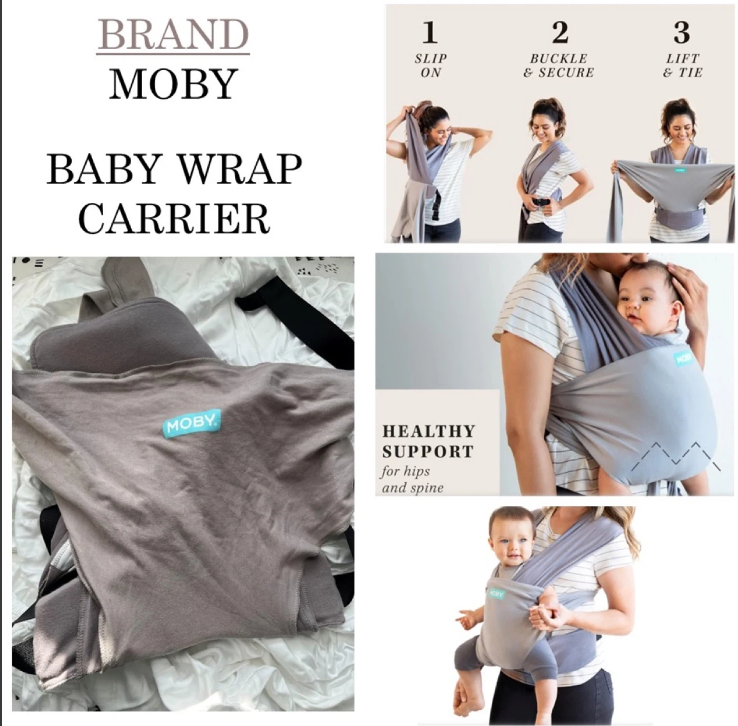 Selling a Moby baby wrap carrier! It's in great condition and provides healthy support for your baby's hips and spine. Easy to slip on, buckle, and lift and tie, making it a convenient choice for parents on the go
