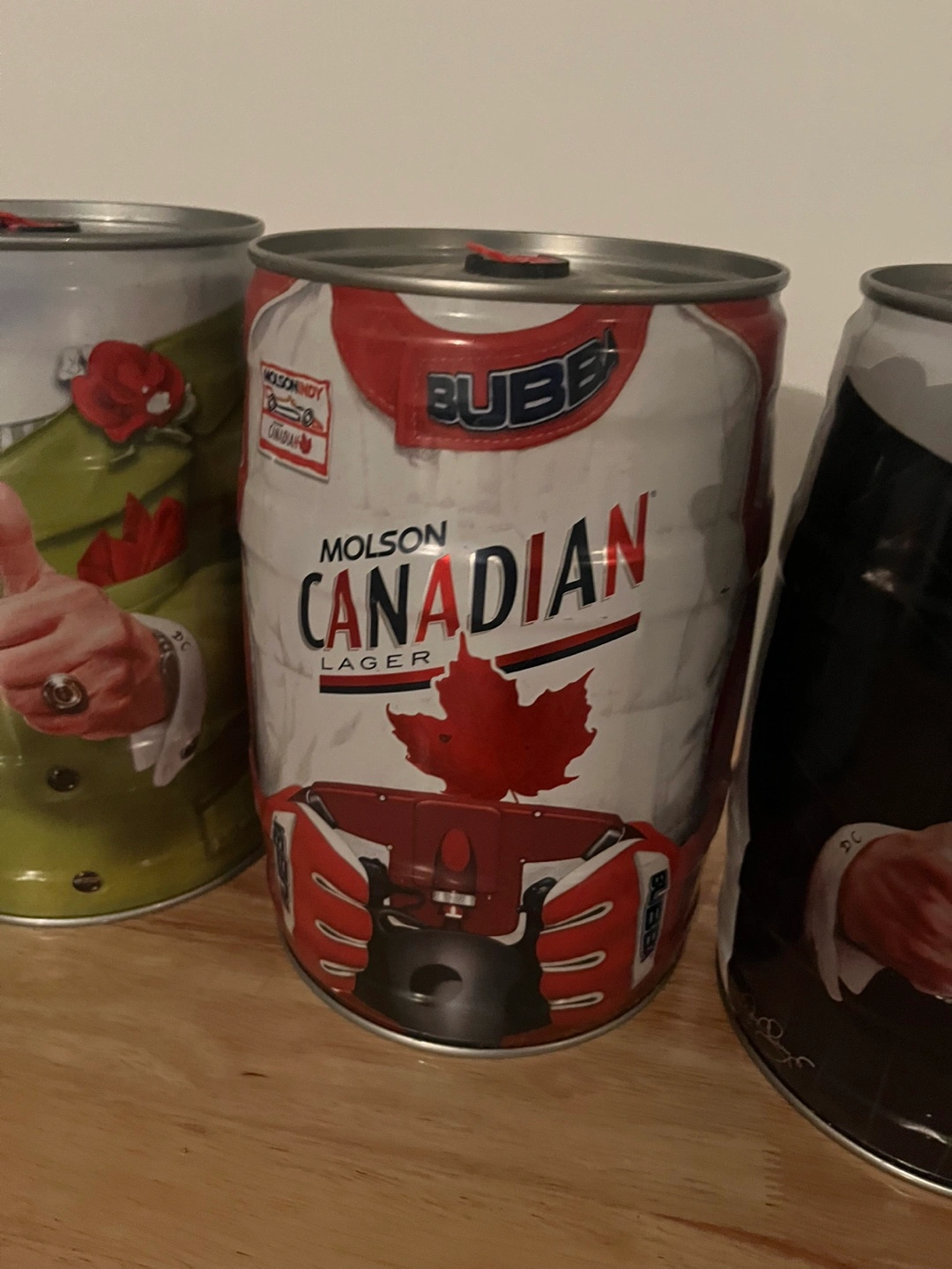 Selling a unique Molson Canadian Lager BUBBA Keg Can! These are decorative and feature fun designs. Great for collectors or anyone looking for a quirky piece of Canadiana!