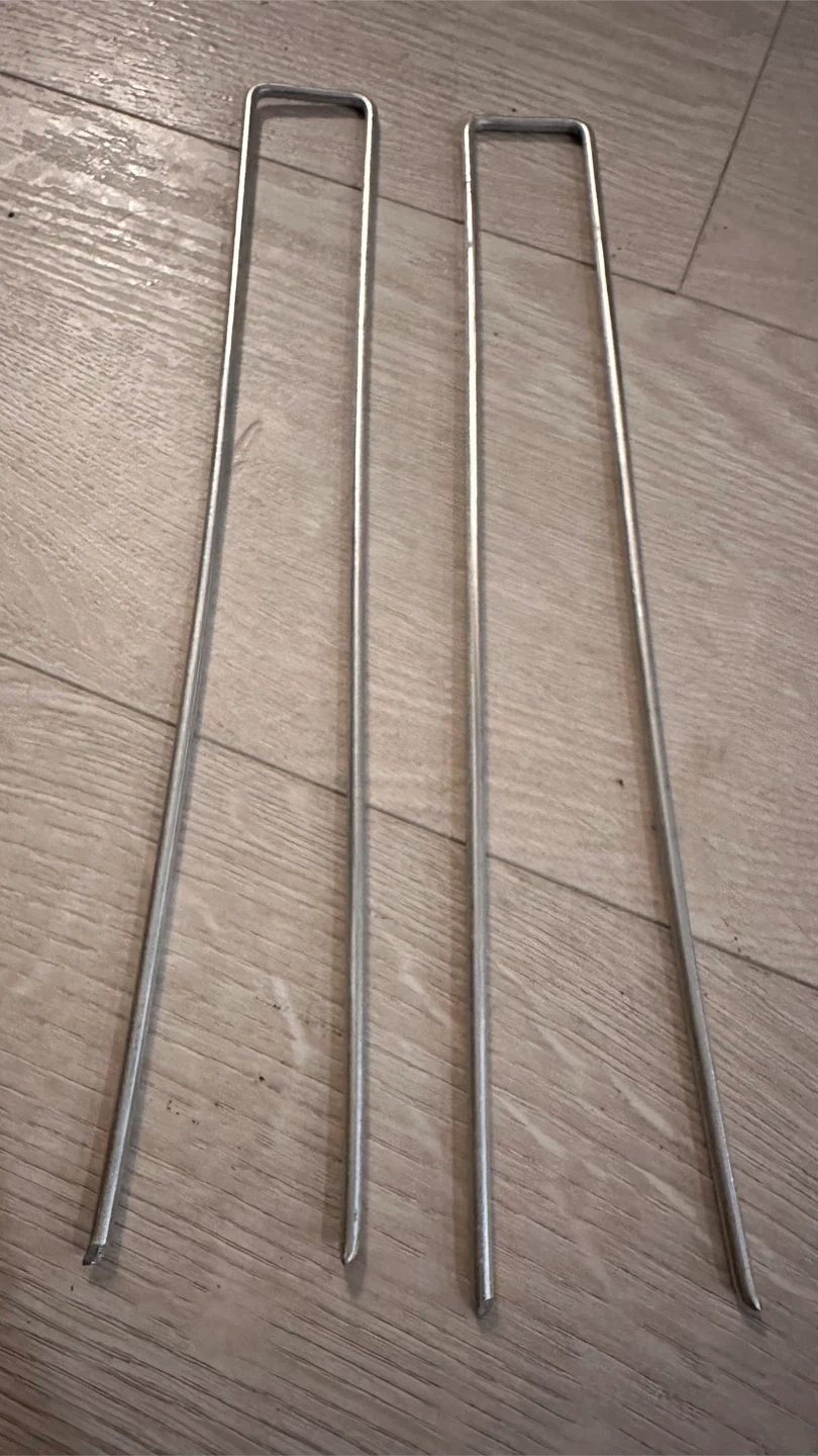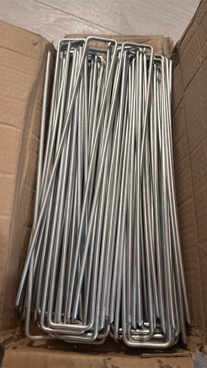 Selling a box of lawn staples. Great for securing landscaping fabric, netting, or anything else you need to keep in place in your yard