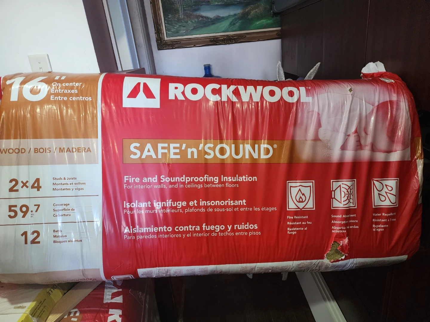 This ROCKWOOL SAFE'n'SOUND insulation offers fire and soundproofing for interior walls and ceilings between floors. It's designed for 2x4 studs and joists with a coverage of 59.7 sq. ft. It's water repellent, fire resistant, and sound absorbent. This insulation is great for home renovations!