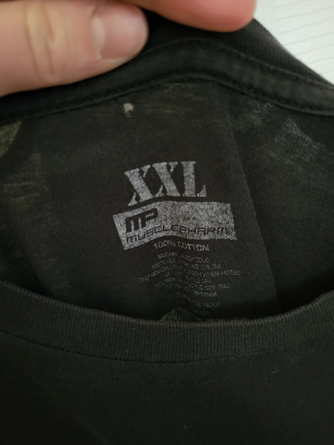 Black MusclePharm t-shirt with "Weak Ends Here" graphic. It's size XXL and made of 100% cotton. This shirt is for anyone who's hitting the gym! Small hole by neckline
