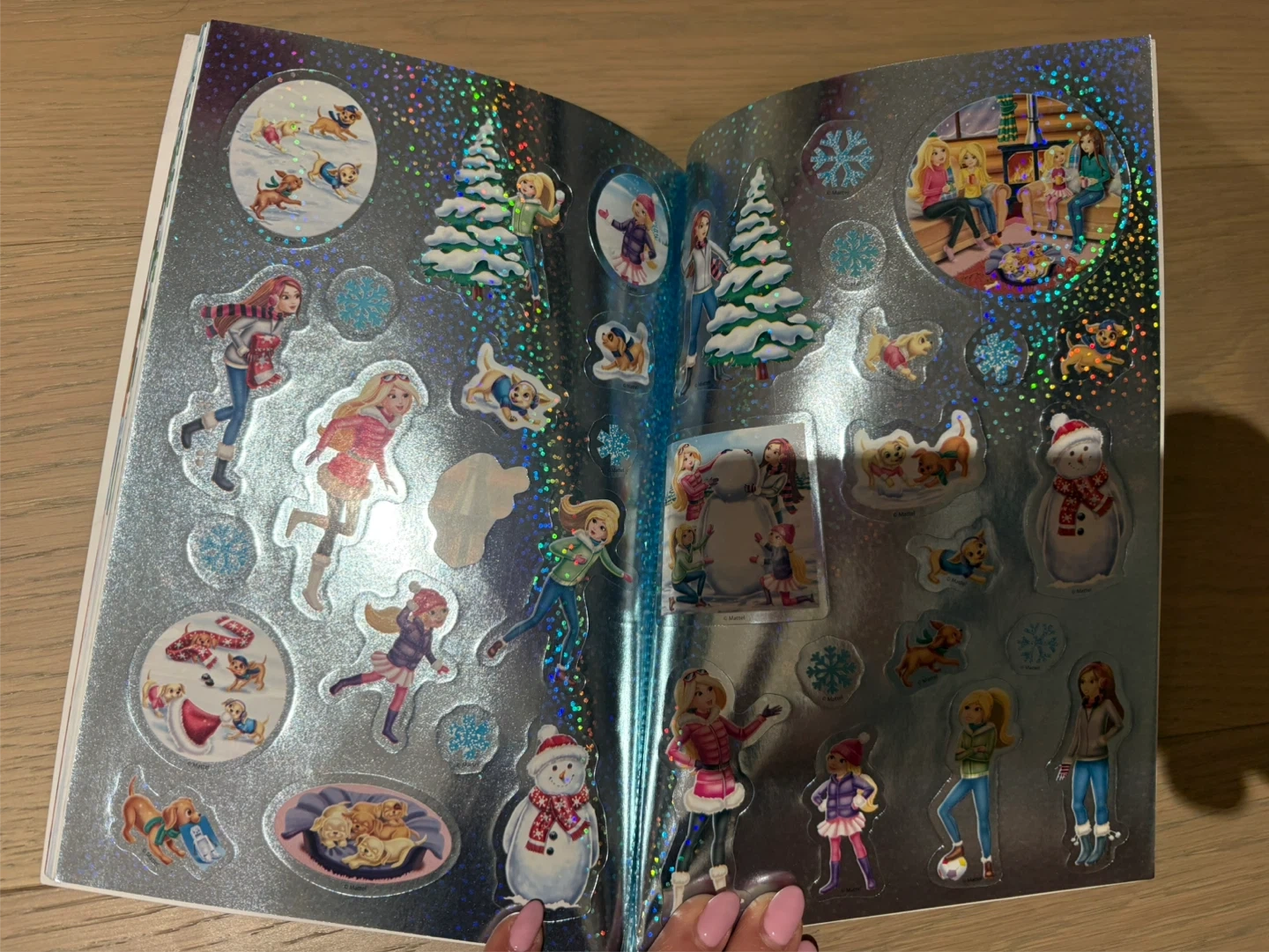 Barbie "Let's Build a Snowman!" is a Step 1 Step Into Reading book, perfect for preschoolers learning to read. It features sparkly stickers for extra fun. Only one sticker was removed. This book is great for young children just starting their reading journey!