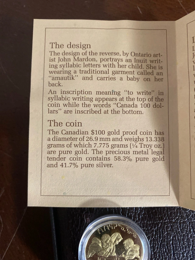 Buy & Sell1990 gold coin 100$1990 gold coin 100$$1,425I am selling this 1/4 oz gold coin Inuit writing letters with her child 58.3% gold 41.7% silver. Price may change with gold spot price.WHERE TO MEETCheck LocationView MapSELLERChadAcadia261 review2 chats·0 favorites·69 viewsSEND CHAT TO SELLERHi Chad! I’m interested in your listing.Hi Chad! I’m interested in your listing.Get the Karrot app to chatSign In to chat