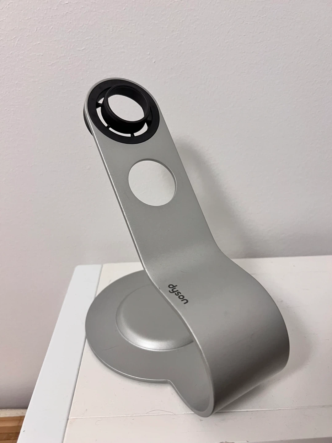 This is a silver stand for a Dyson Supersonic hair dryer. It's designed to hold the hair dryer securely, neatly and accessible. It’s original Dyson metal stand, in great condition with minor scratches as shown in the picture.