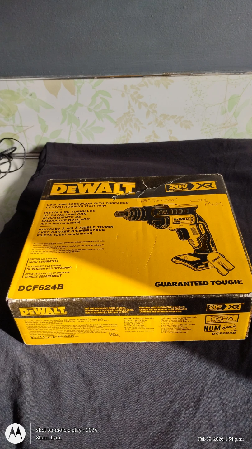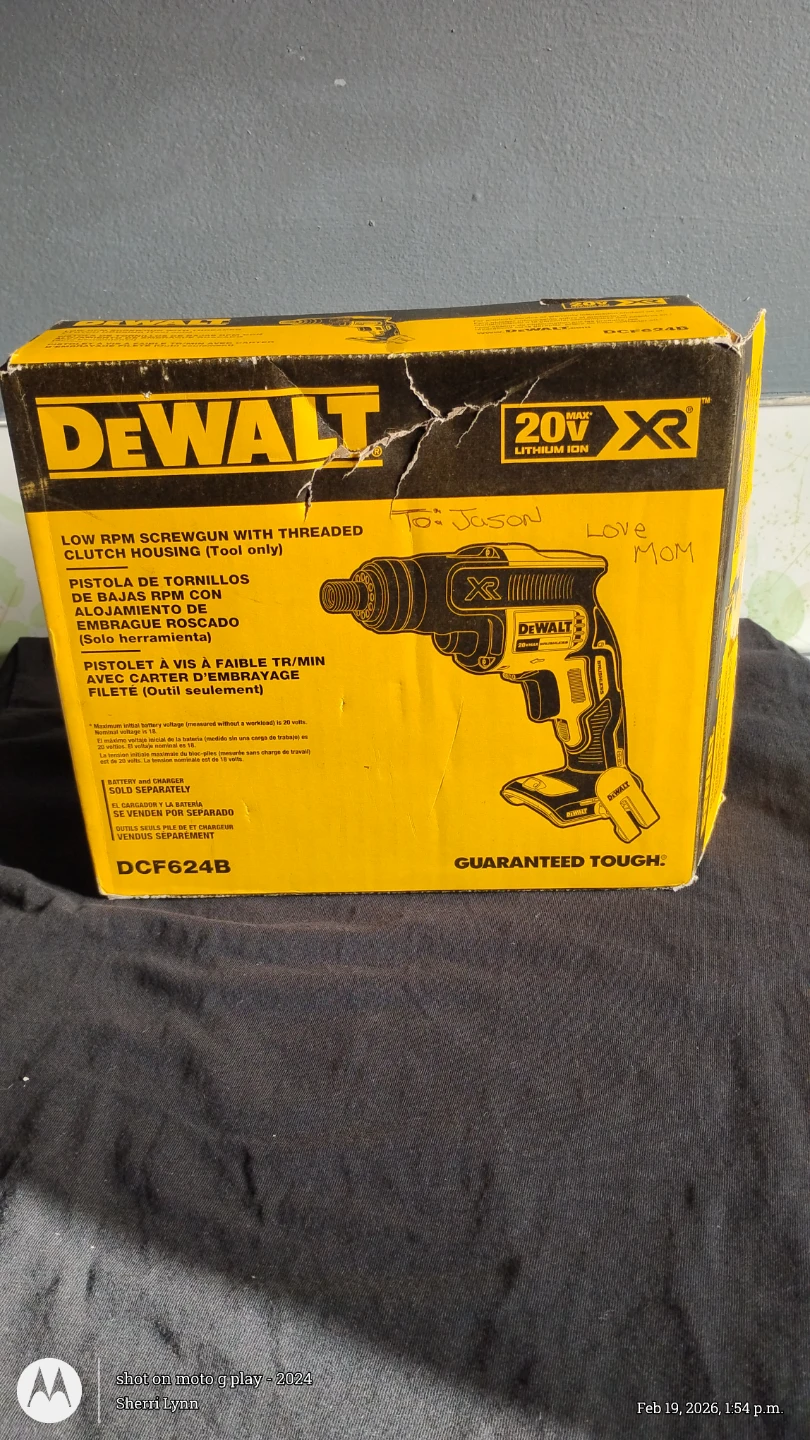 1This is a DEWALT 20V XR Brushless Screwgun with threaded clutch housing. It features a low RPM setting and comes in its original box. It's a 1/4" (6.35 mm) hex size.