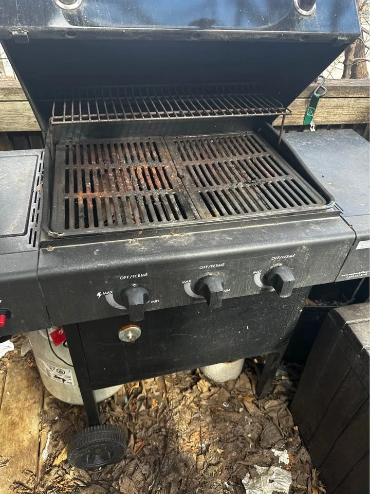 The outside is in good condition, the grates inside may need to be replaced. Starter doesn’t work but the wires will just need to be reconnected. It hasn’t been used in ~1 year. Doesn’t come with a propane tank. Pickup only, you must be able to help carry it down 1 flight of stairs.