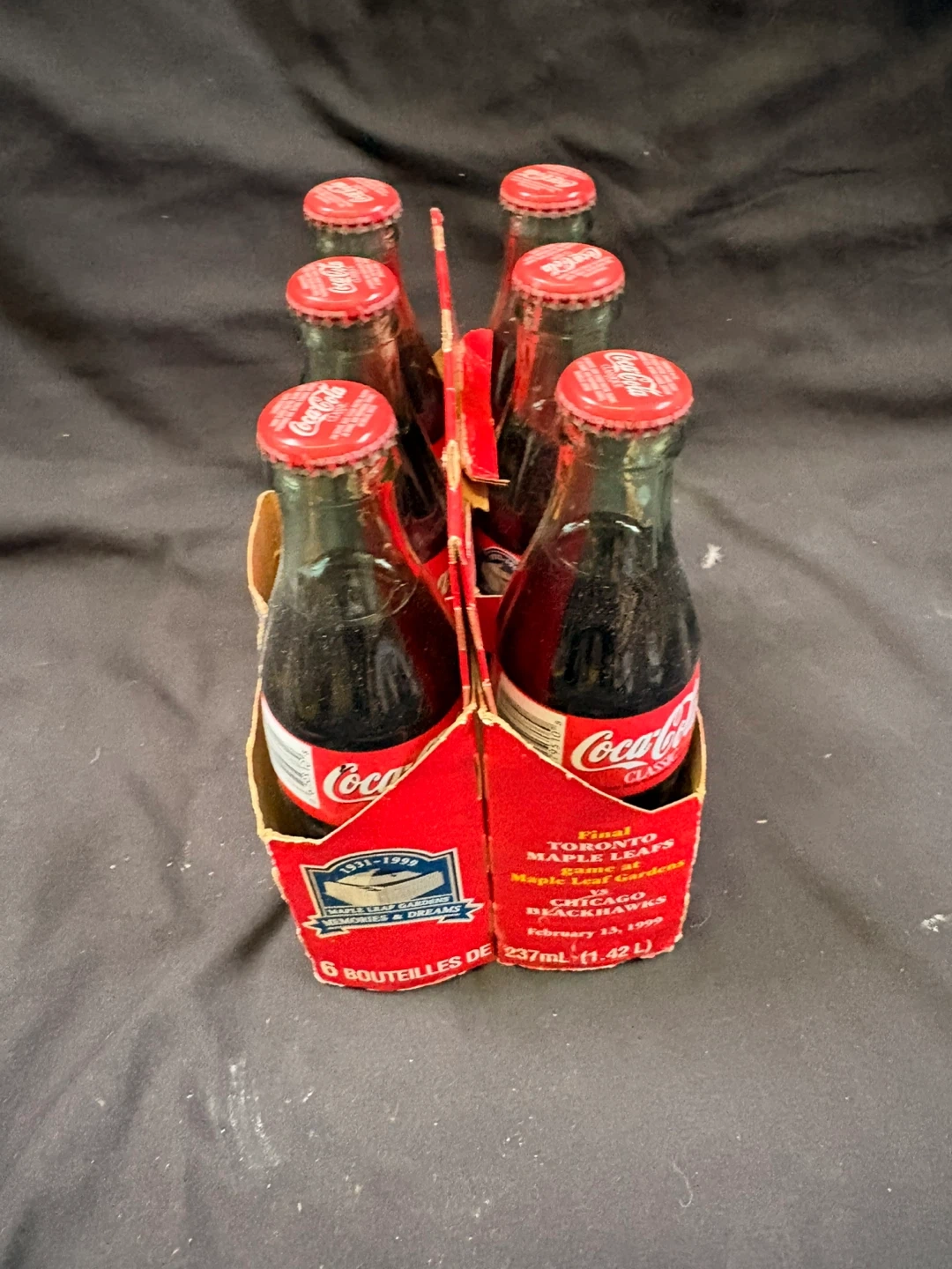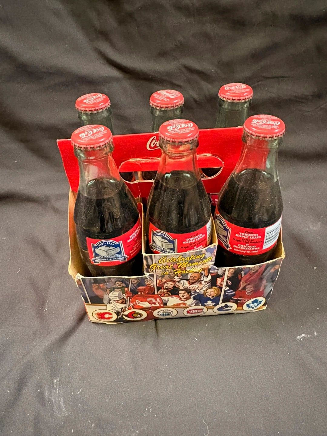 This is a 6-bottle pack of Coca-Cola Classic. Each bottle contains 237ml of beverage. The packaging features images celebrating Canadian hockey.
