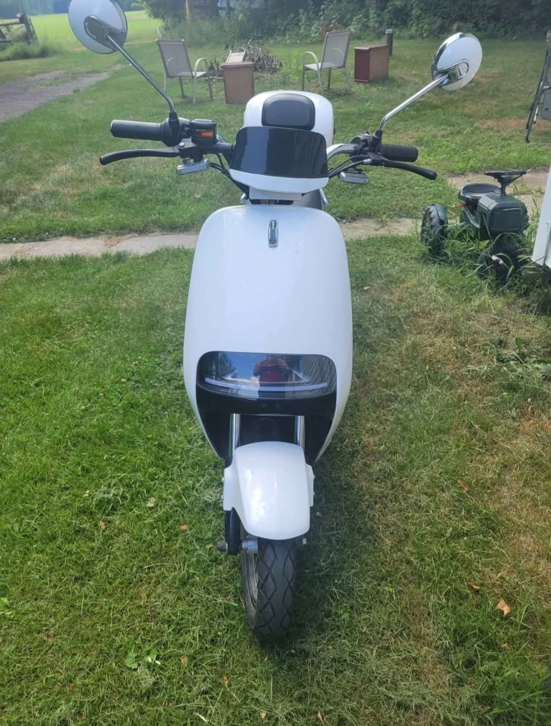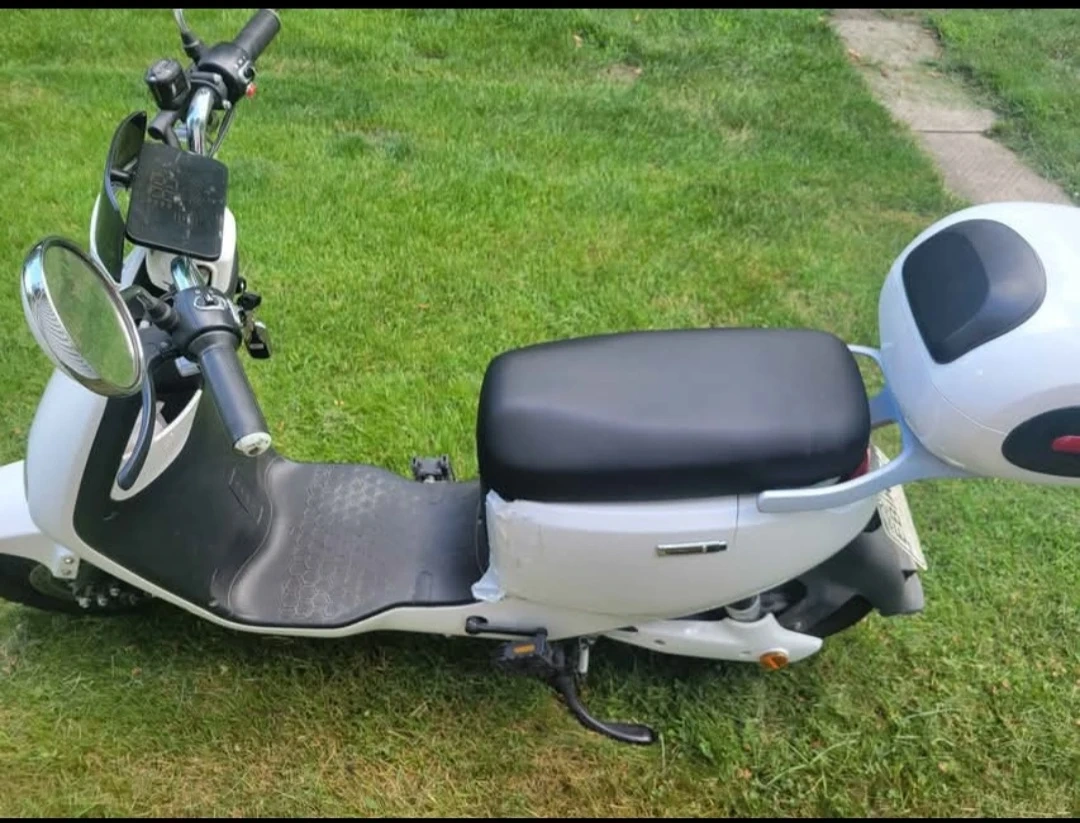 Zip around in style with this sleek white electric scooter! ⚡️ Eco-friendly, modern design, and perfect for city or country cruising. Ready to ride – just charge and go! 🛵💨
