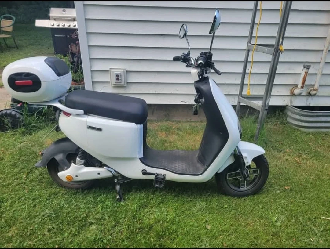 White Electric Scooter with Storage Box