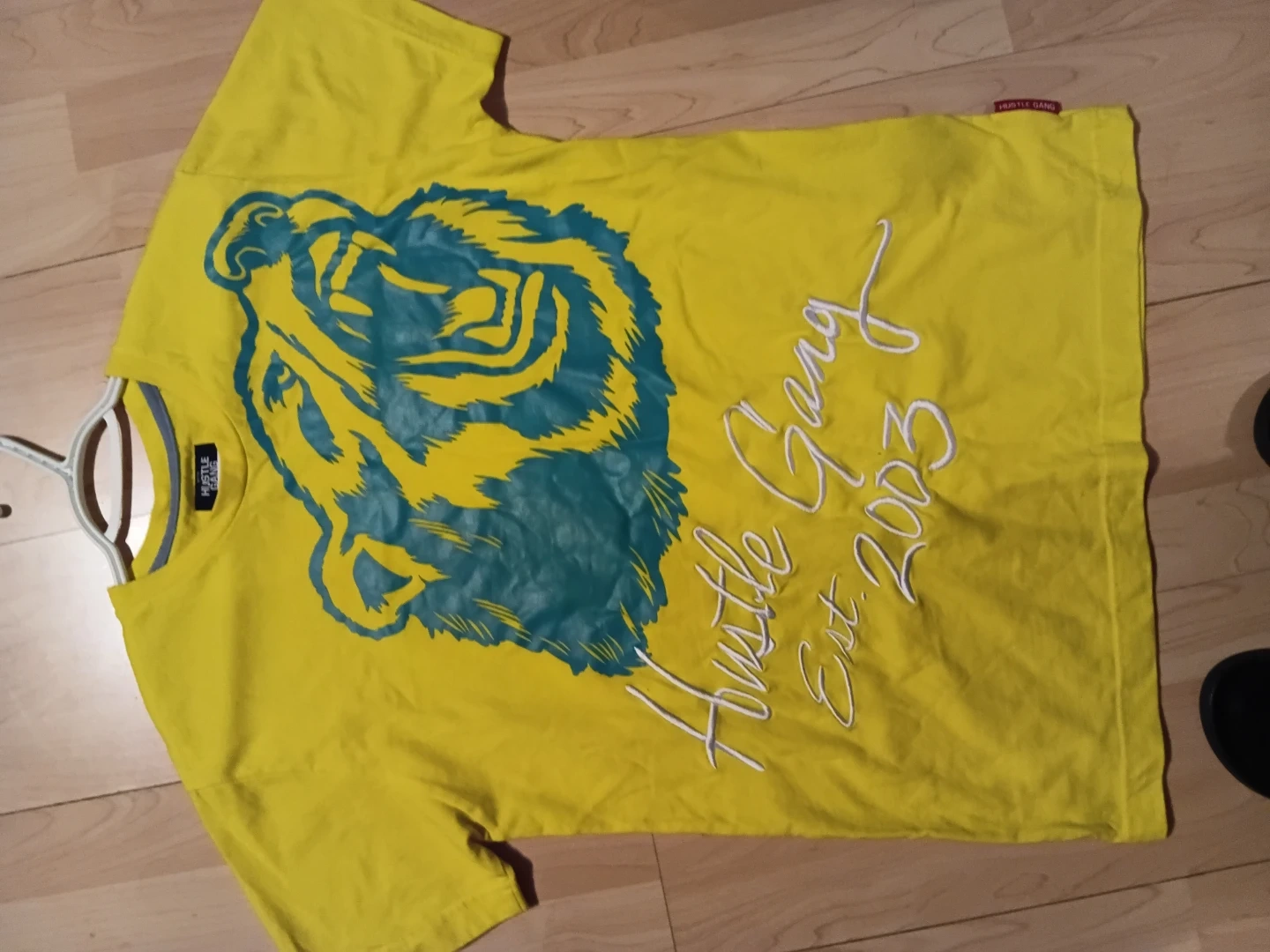 This is a Hustle Gang t-shirt. It's size SM and made of cotton. Features a large graphic print on the front. .