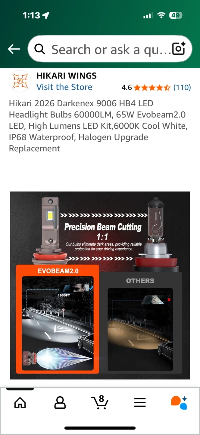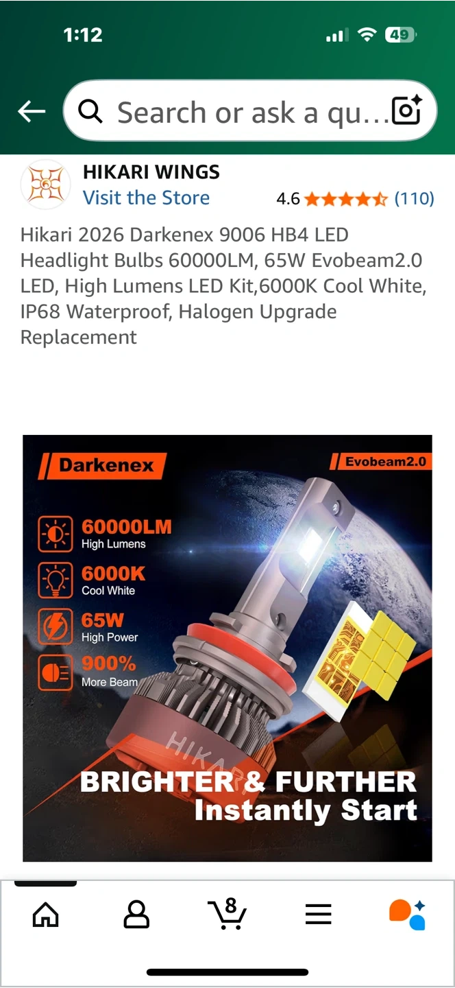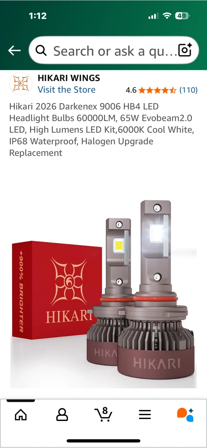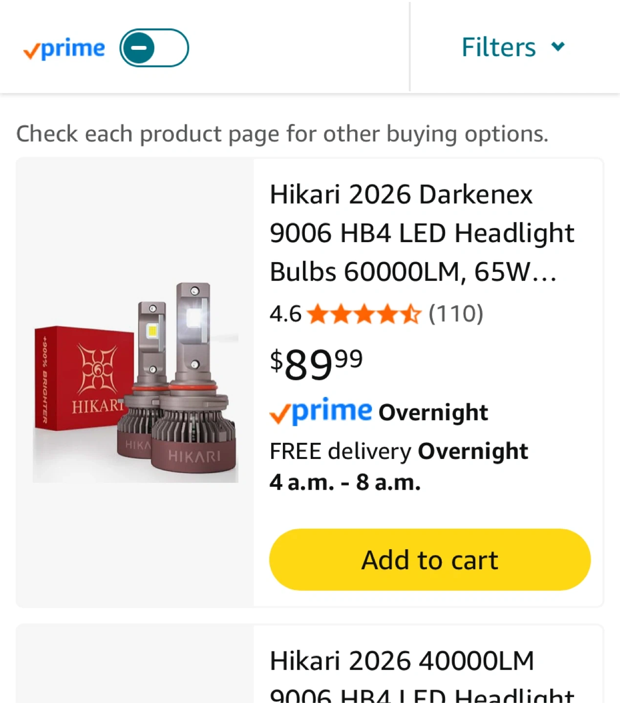 Selling Hikari 2026 Darkenex 9006 HB4 LED Headlight Bulbs 60000LM, 65W Evobeam2.0 LED, High Lumens LED Kit, 6000K Cool White, IP68 Waterproof, Halogen Upgrade Replacement. Originally bought for $89.99