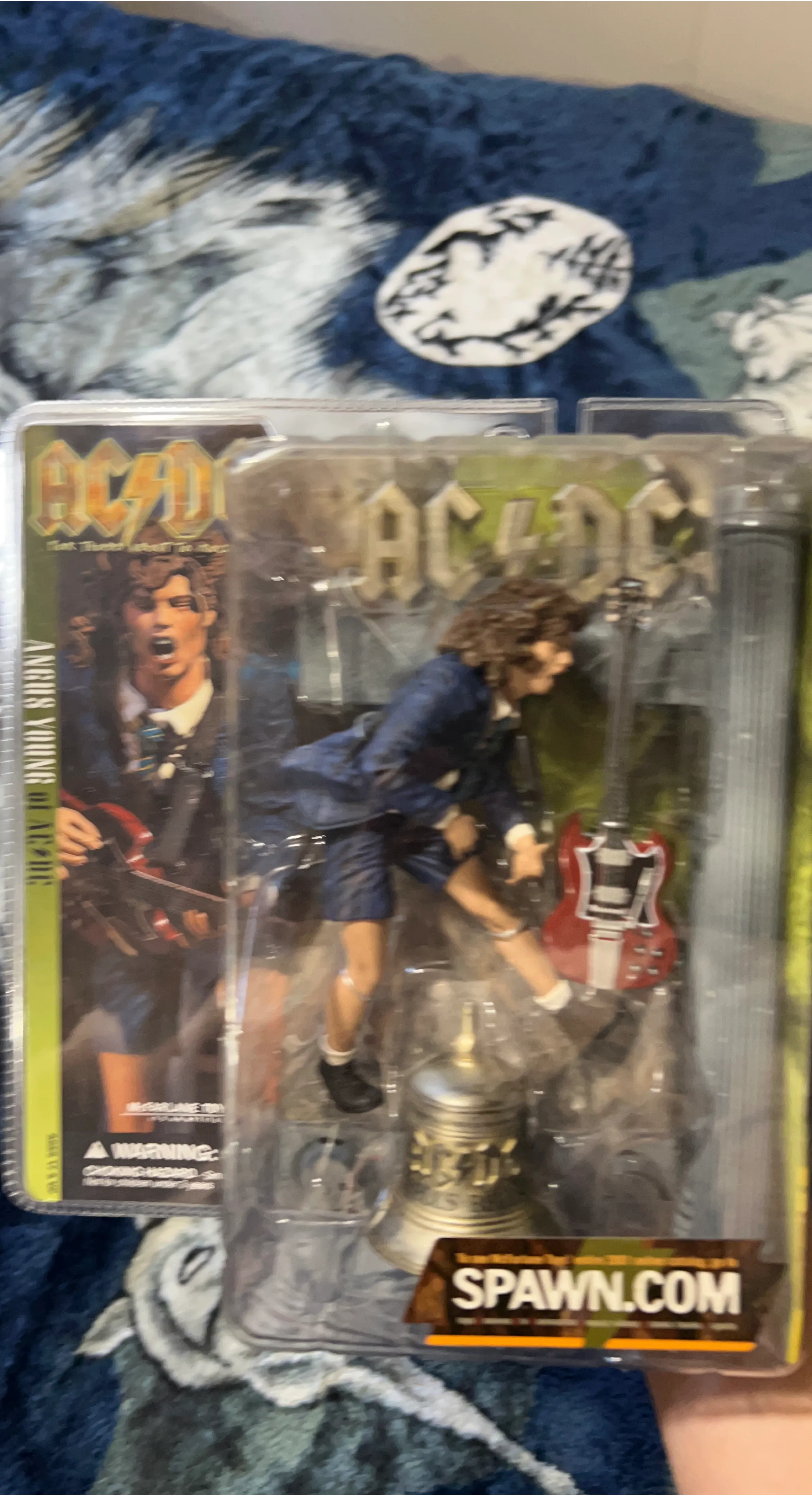 Selling an AC/DC Angus Young action figure by McFarlane Toys! It's still in its original packaging and looks to be in great condition. A cool collectible for any AC/DC fan