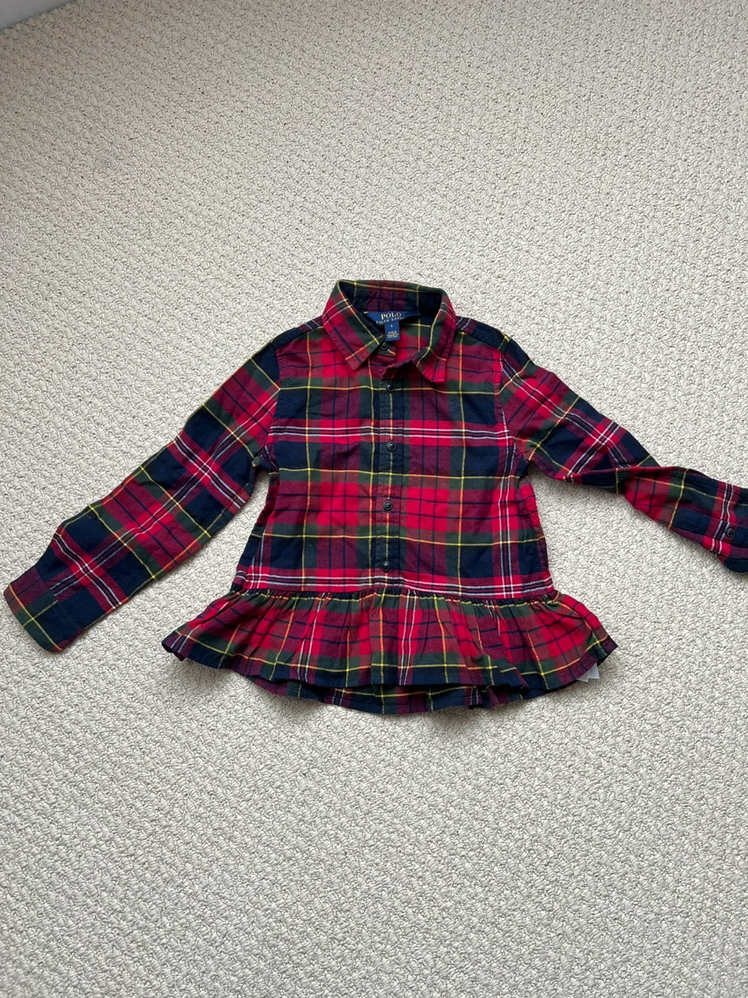 Here's a cute Polo Ralph Lauren plaid shirt for a kiddo! It's a size 6 and features a classic plaid pattern. Perfect for adding a touch of style to any outfit!