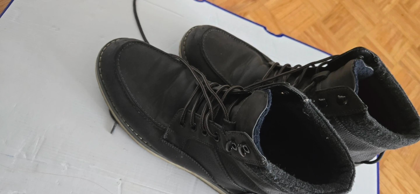 Selling a pair of men's black leather boots in size 8. They're in good condition and ready for a new owner! Please take a look at the photos to see the condition.