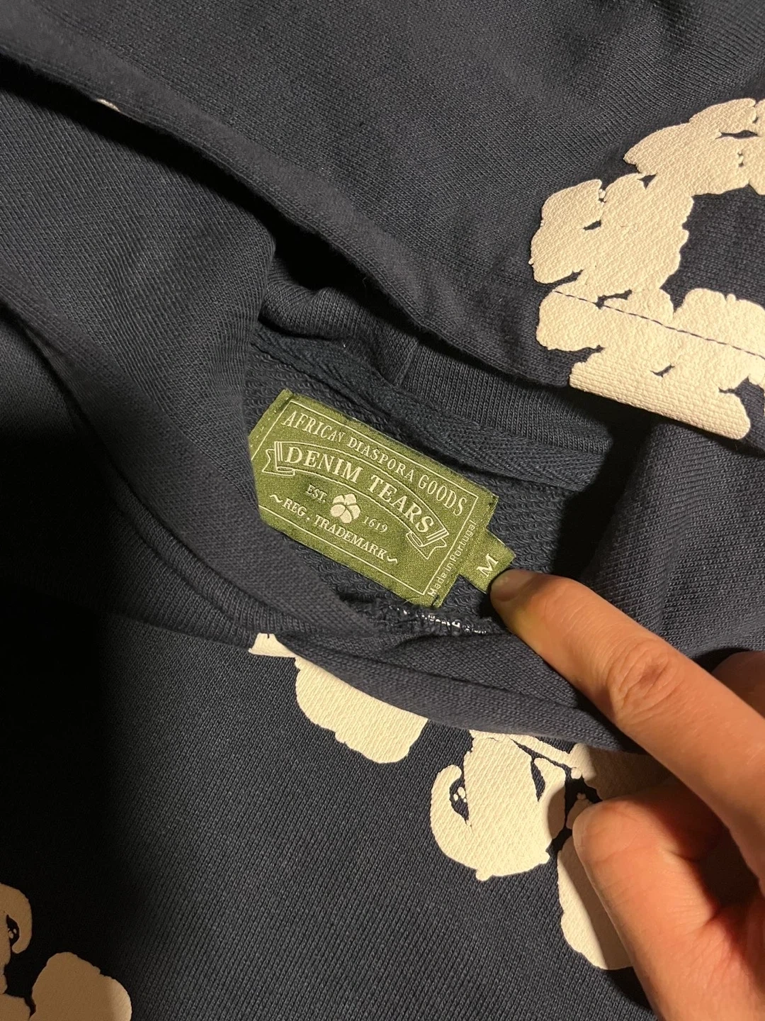Selling an African Diaspora Goods Denim Tears hoodie in size medium. It features a unique floral design. Made in Portugal.