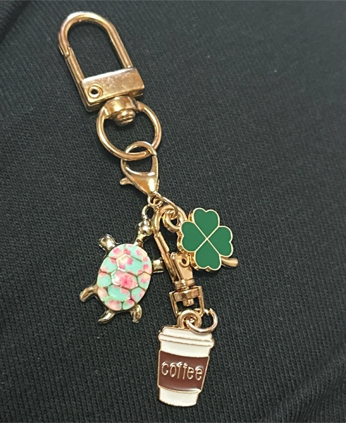π₯ Handmade Keychain with Turtle, Clover & Coffee Charms
