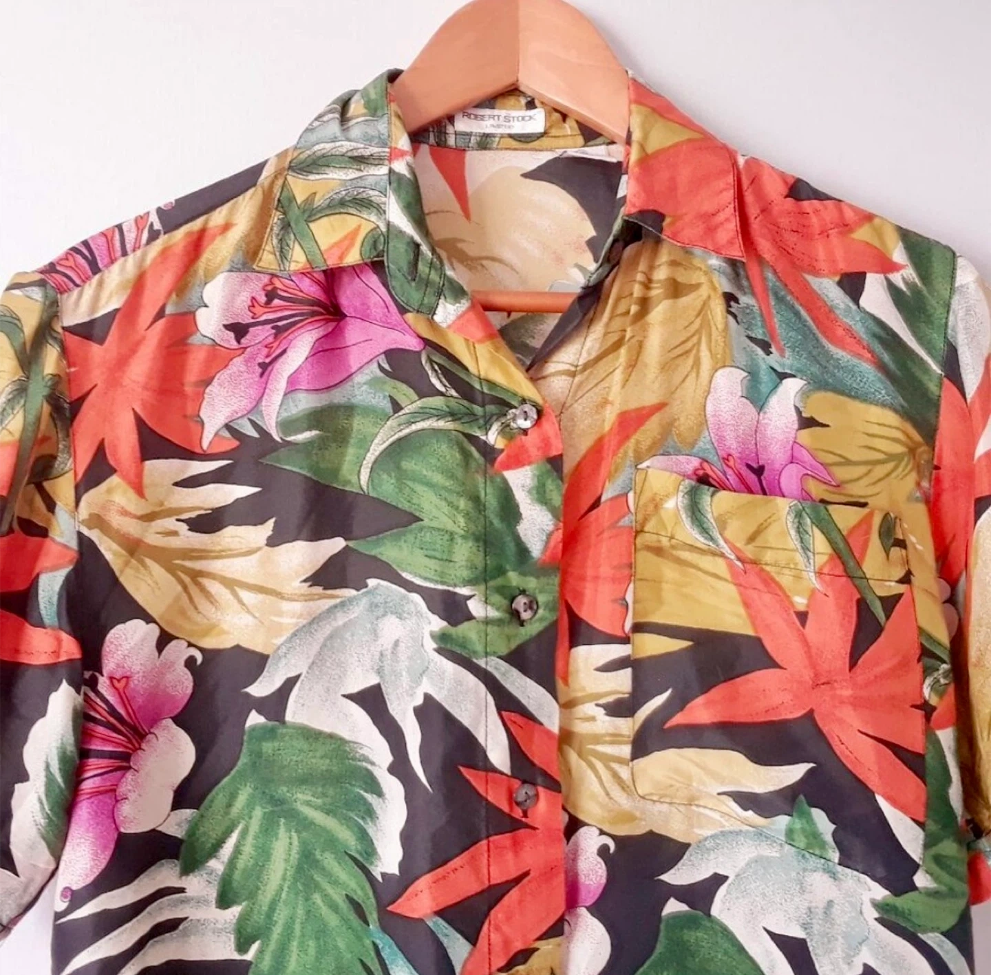 Rare 90s 100% Silk Floral Blouse Robert Graham Limited Edition