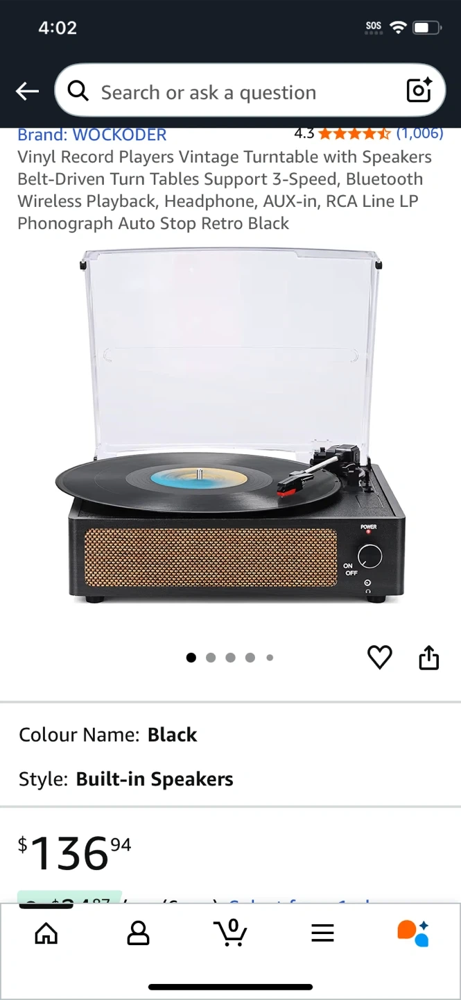 Selling a WOCKODER Vintage Turntable with Speakers in black. It's a belt-driven turntable that supports 3-speed playback and has built-in speakers. It also features Bluetooth wireless playback, headphone, AUX-in, and RCA Line LP Phono options. The original price was $136.94 new