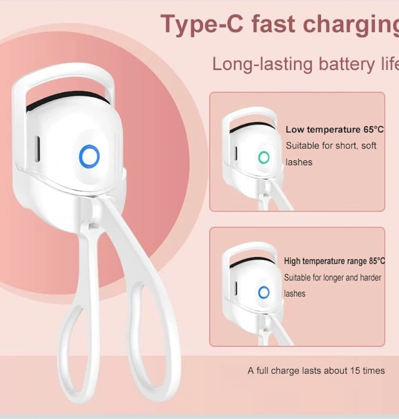 White Electric Eyelash Curler with USB Charging Cable