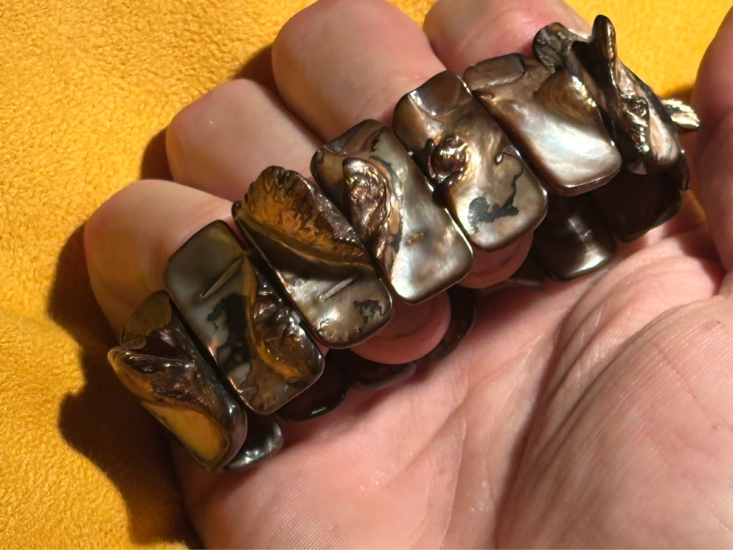 Vintage stretchy Rectangular Abalone Shell Bracelet