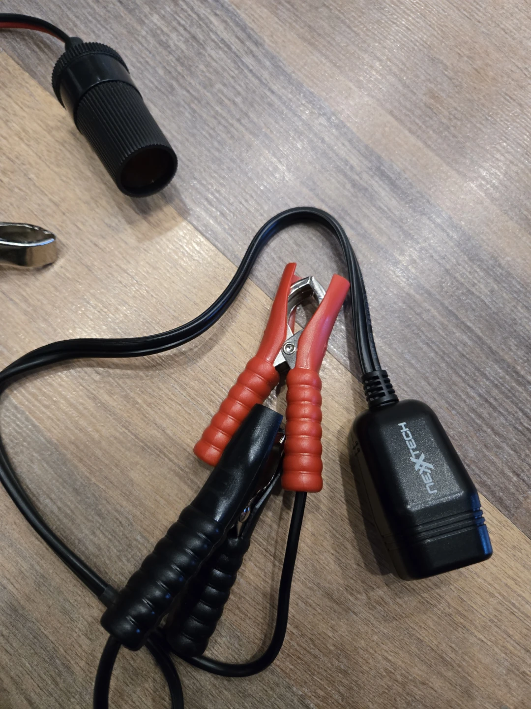 This NEXTECH DC power receptacle connects directly to a 12V car/truck battery. It powers accessories up to 10 amps maximum. This is useful for portable power needs when a vehicle battery is available.