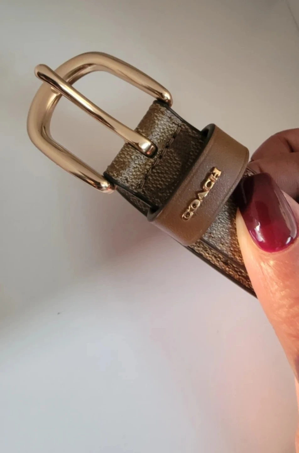 Selling a Coach belt in size L. It features the signature Coach pattern and a gold-tone buckle. The style number is F78179 IMBOX. Made in Vietnam.