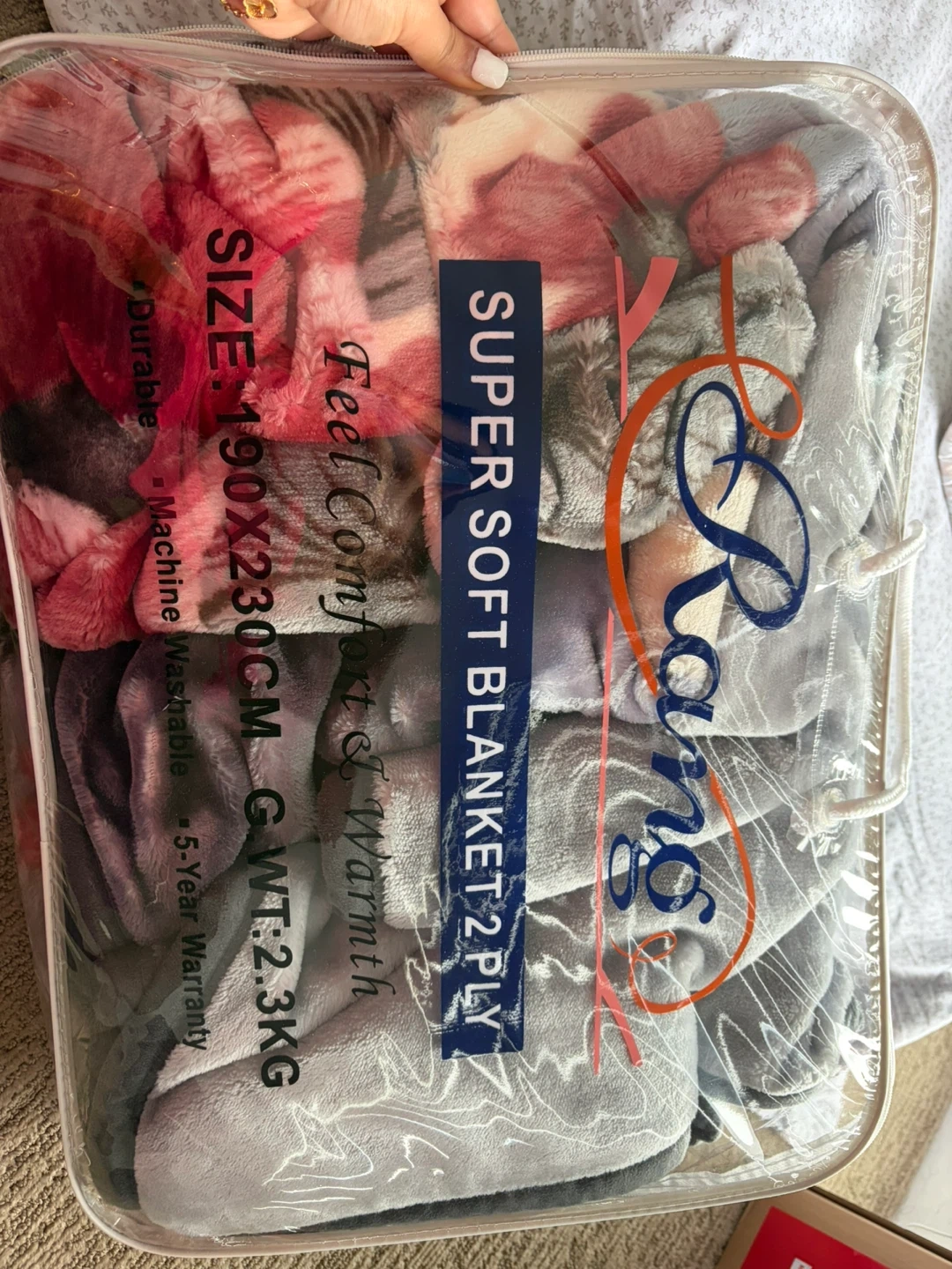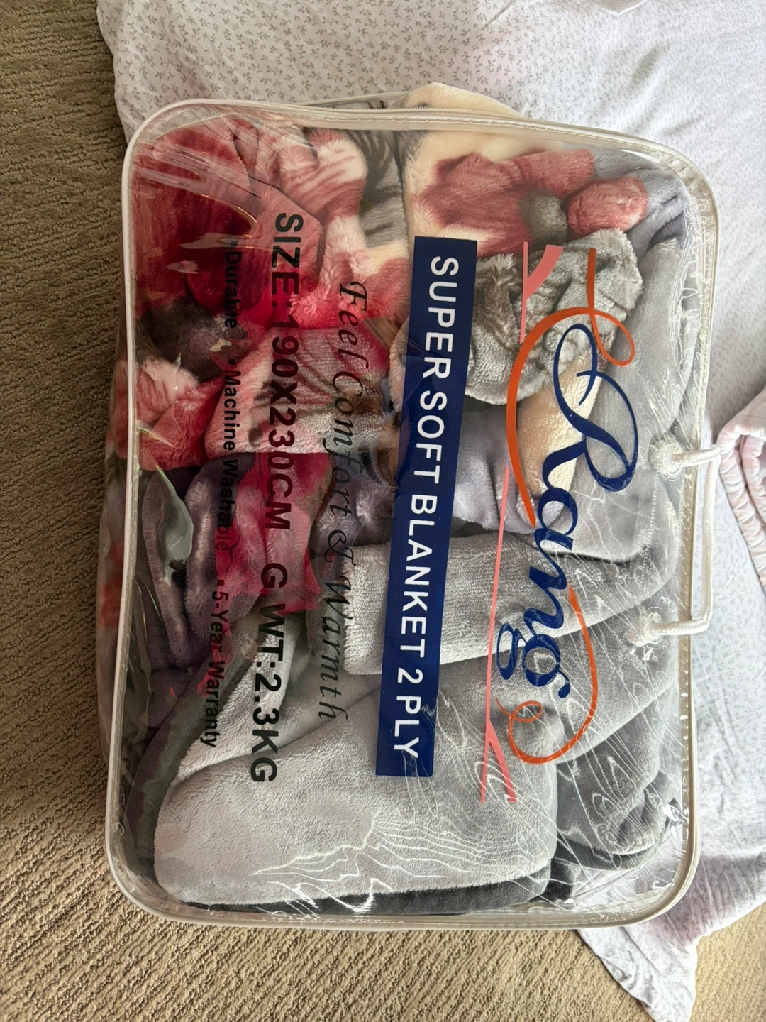 Brand new not used, moving out sale. This Rong Super Soft 2 Ply blanket offers comfort and warmth. It measures 190 x 230 CM and weighs 2.3 KG. Machine washable for easy care.
