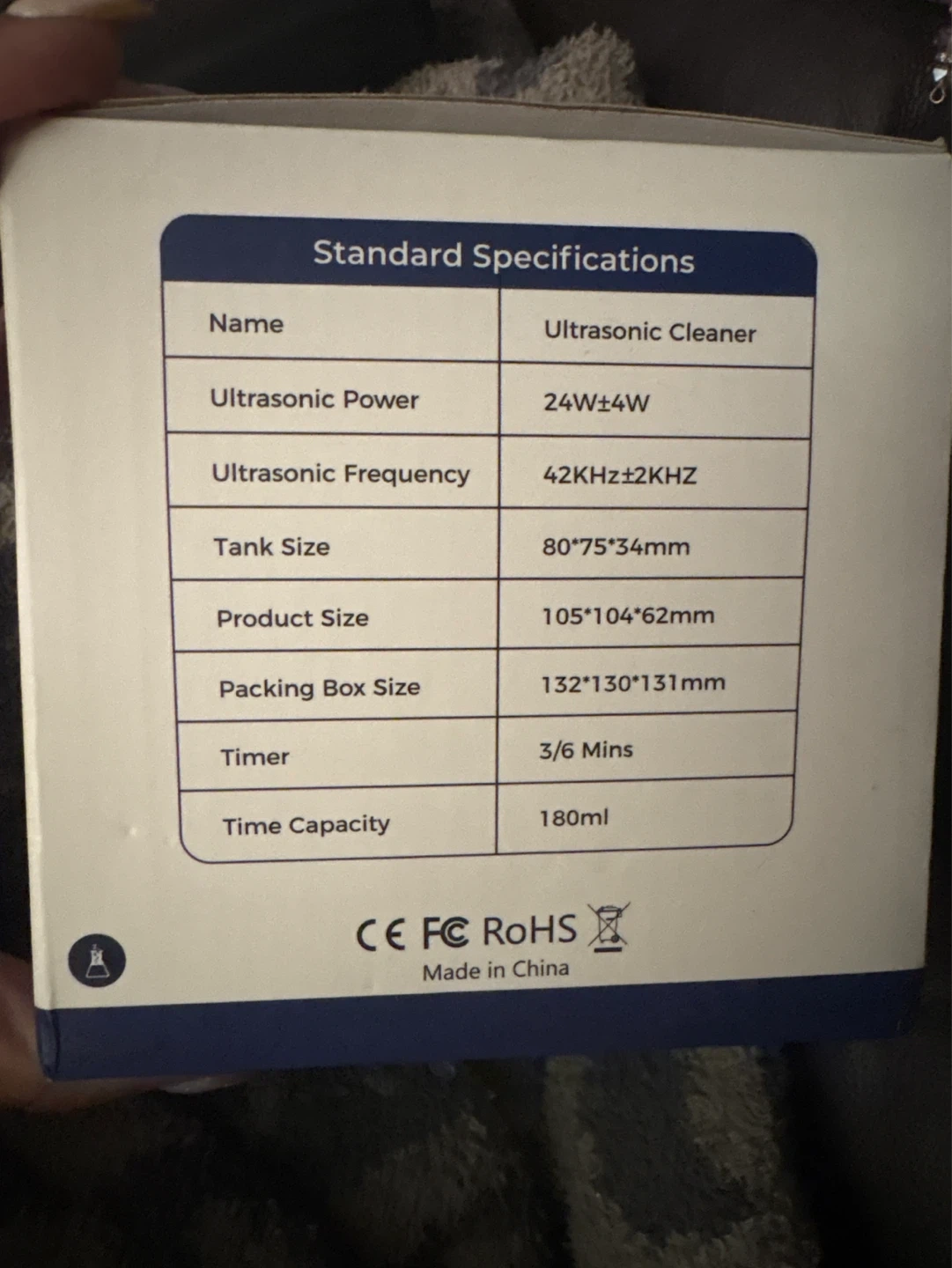 This ultrasonic cleaner uses 42000HZ cleaning power and includes UV sterilizing lights. It features a SUS 304 stainless steel tank and 3/6 minute cycles. The unit is compact and quiet.