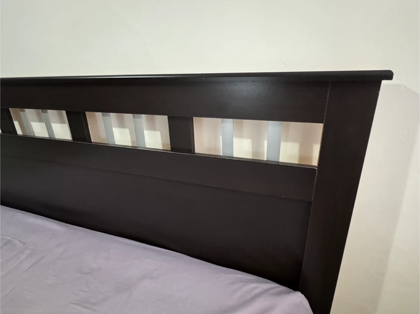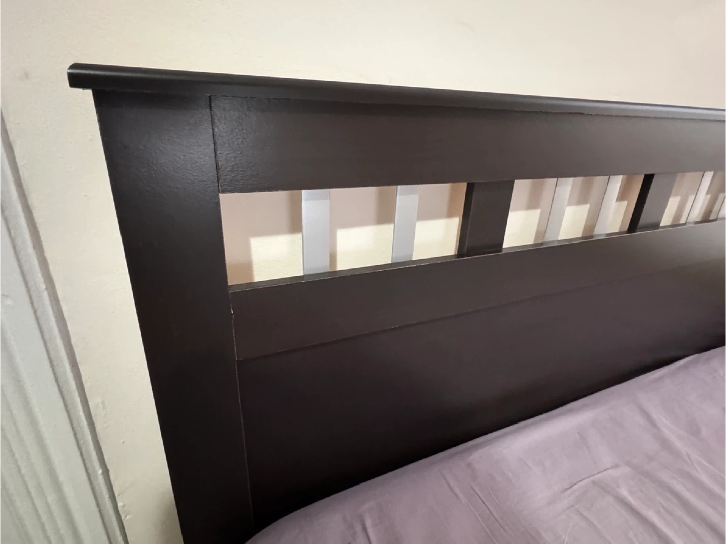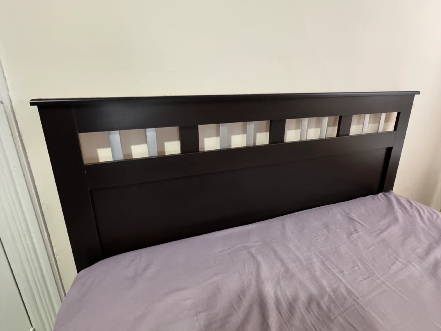 Buy & SellDark Brown Wooden Headboard & Metal BedframeDark Brown Wooden Headboard & Metal Bedframe$65A sturdy dark brown wooden headboard with a slat design. It attaches to & comes with a bed frame with metal brackets. This headboard is made of wood.ConditionGoodWHERE TO MEETTrinity Bellwoods Park areaView MapSELLERverifiedRoselieTrinity Bellwoods15410 reviews0 chats·0 favorites·14 viewsSEND CHAT TO SELLERHi Roselie! I’m interested in your listing.Hi Roselie! I’m interested in your listing.Get the Karrot app to chatSign In to chat