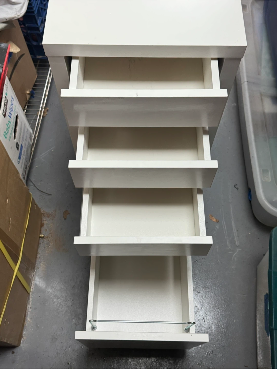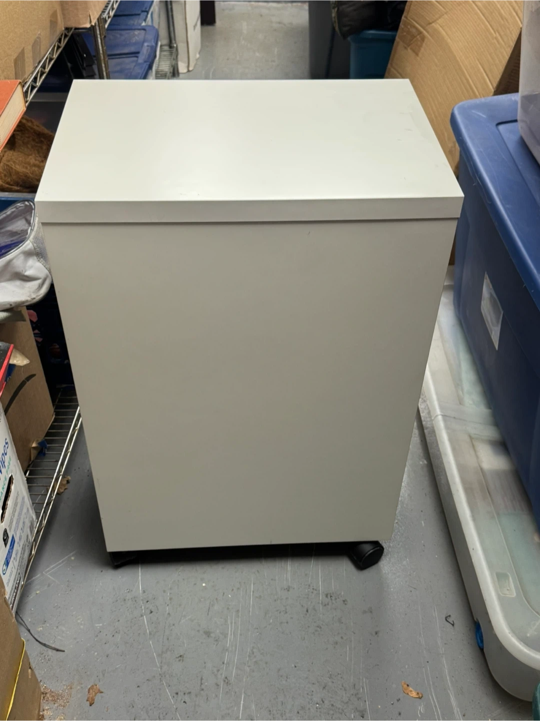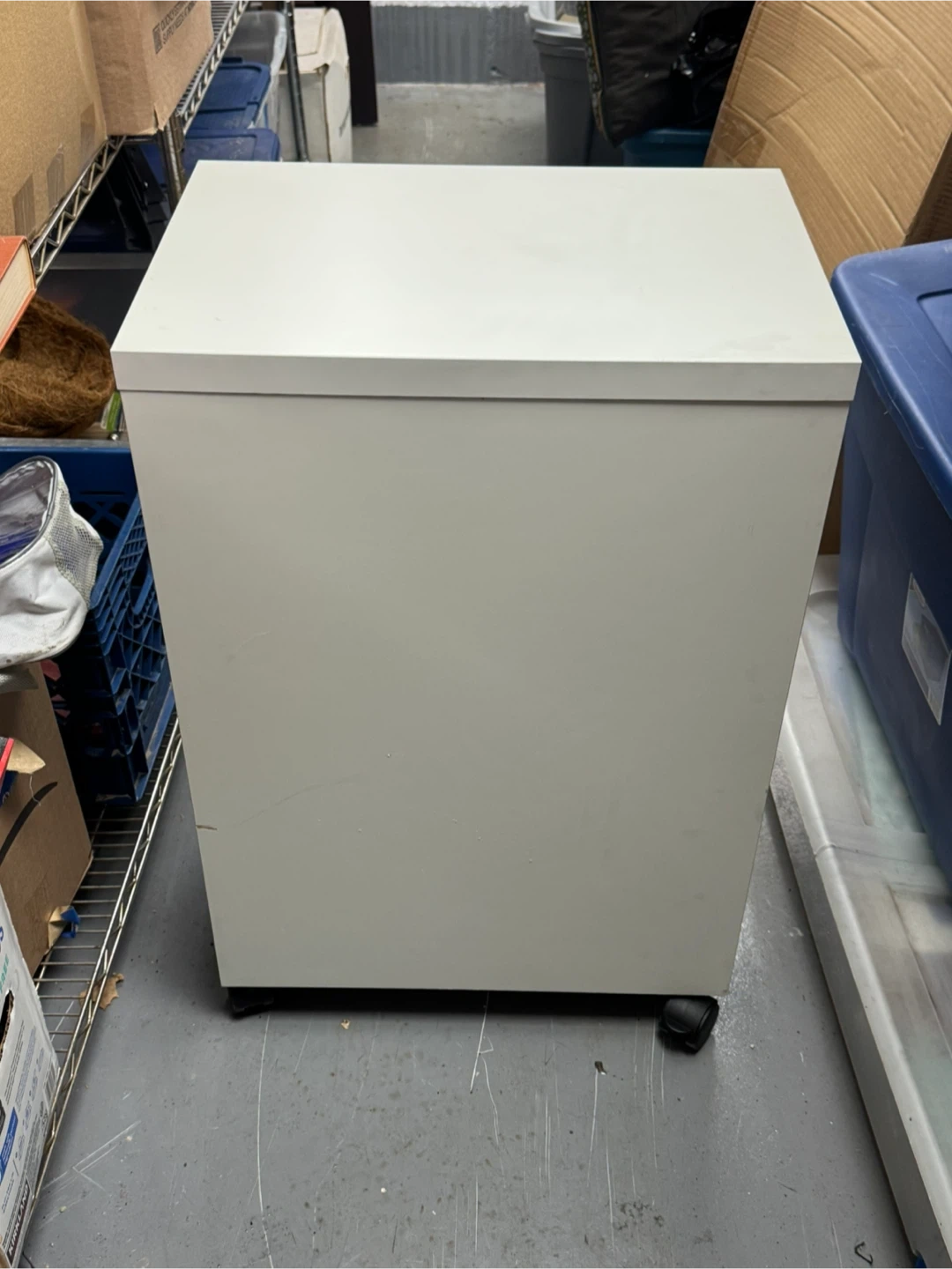 White Rolling cabinet. In good condition