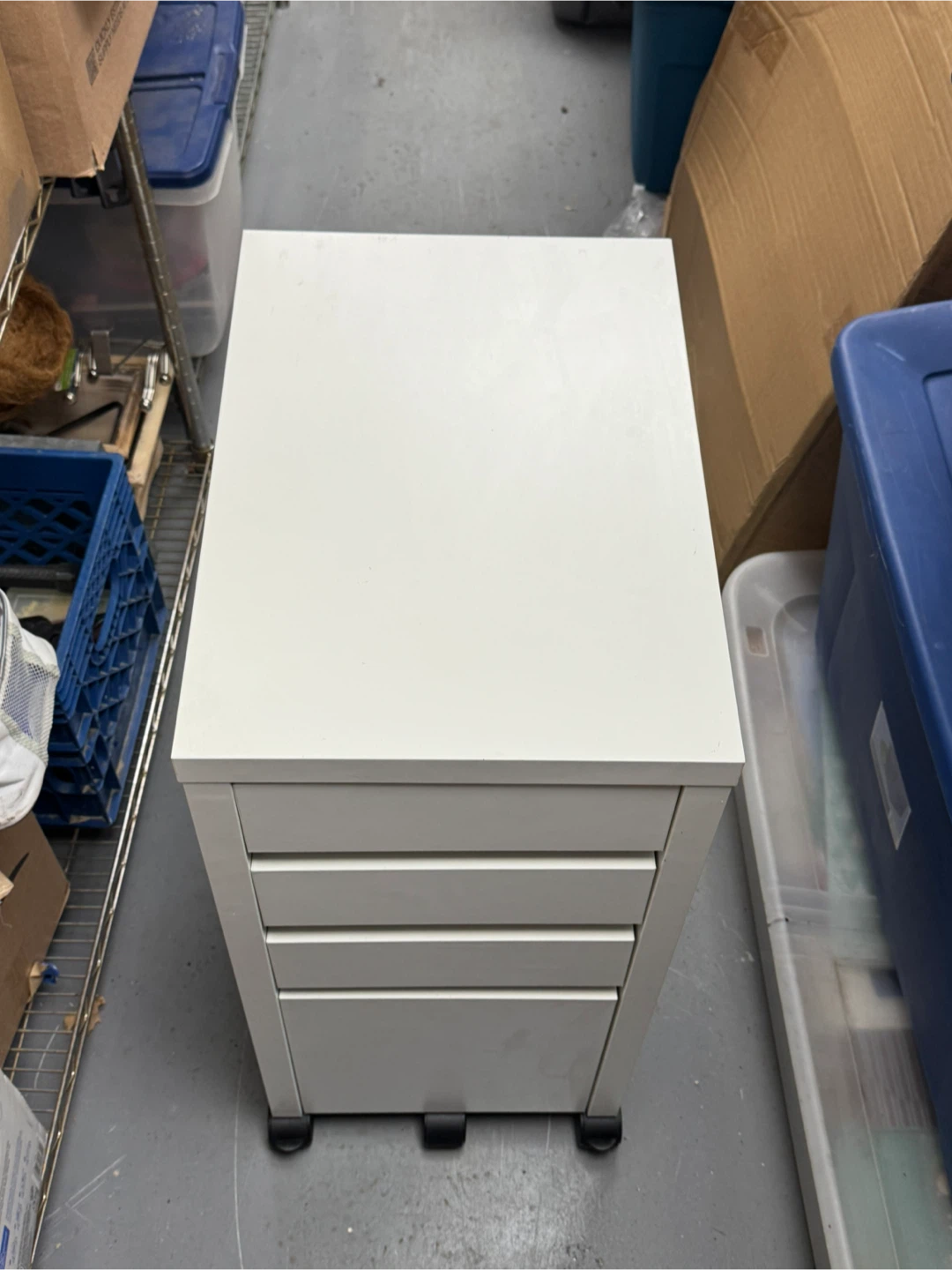 White Rolling cabinet. In good condition