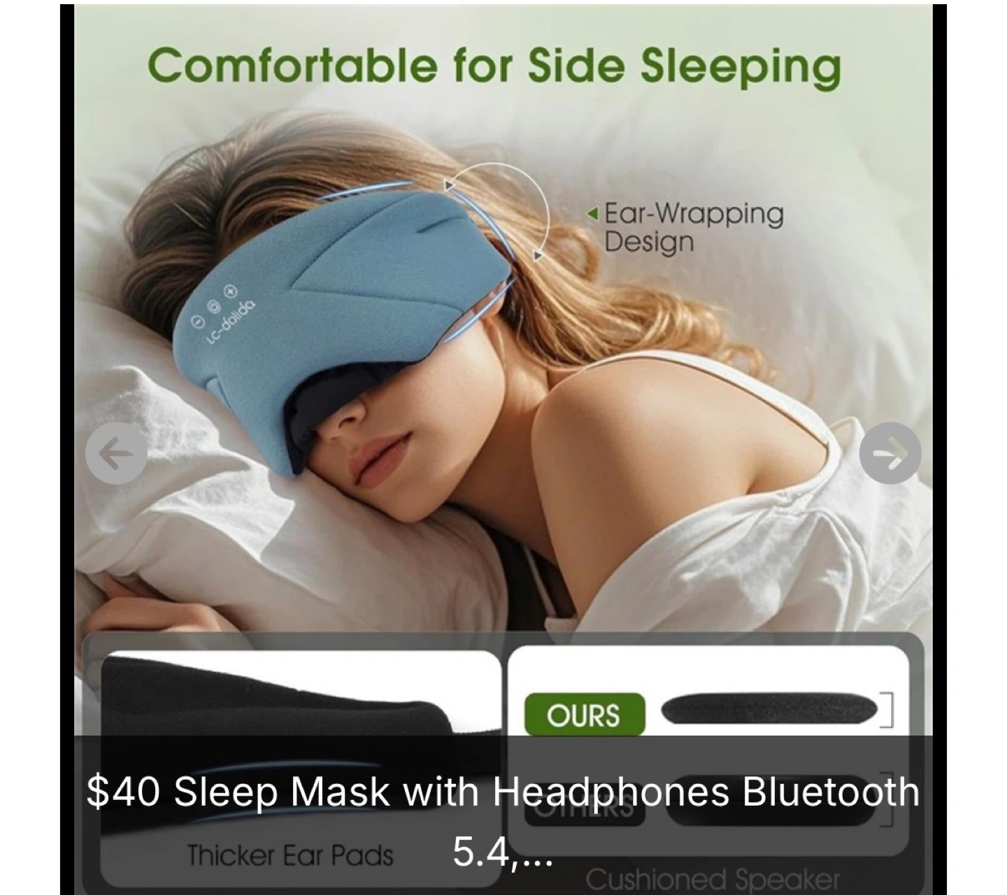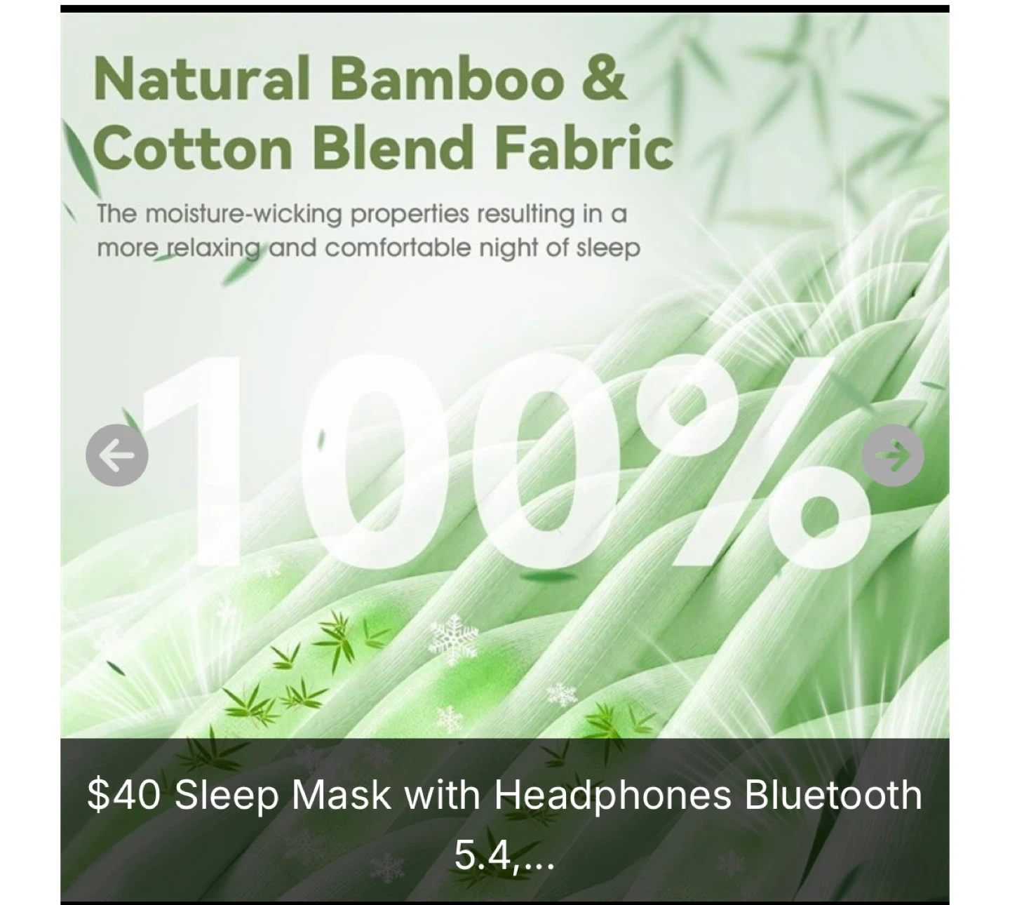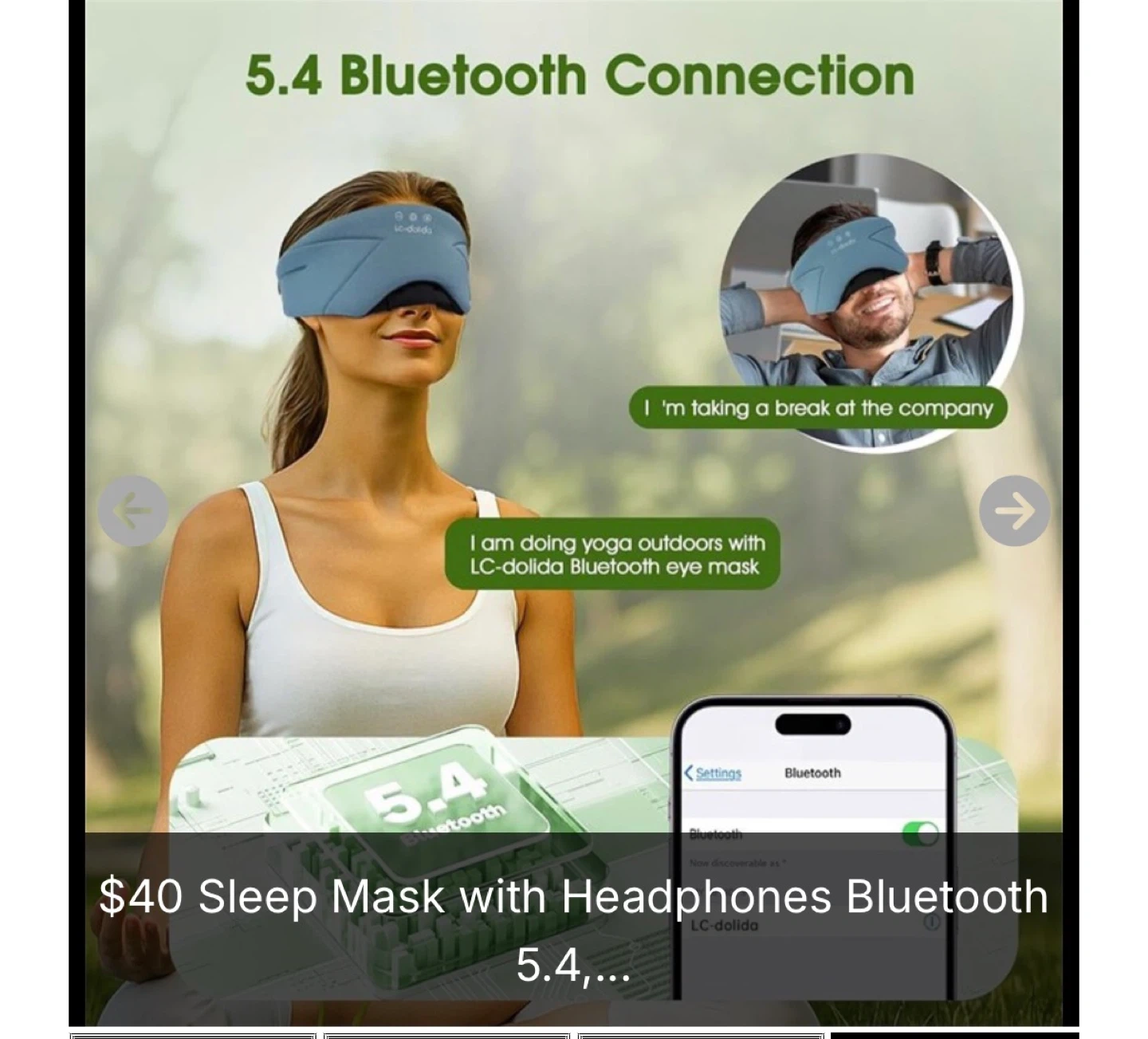 This LC-dolida sleep mask features integrated Bluetooth headphones for music or podcasts. It's made from a natural bamboo and cotton blend fabric for comfort. The ear-wrapping design is comfortable for side sleeping.