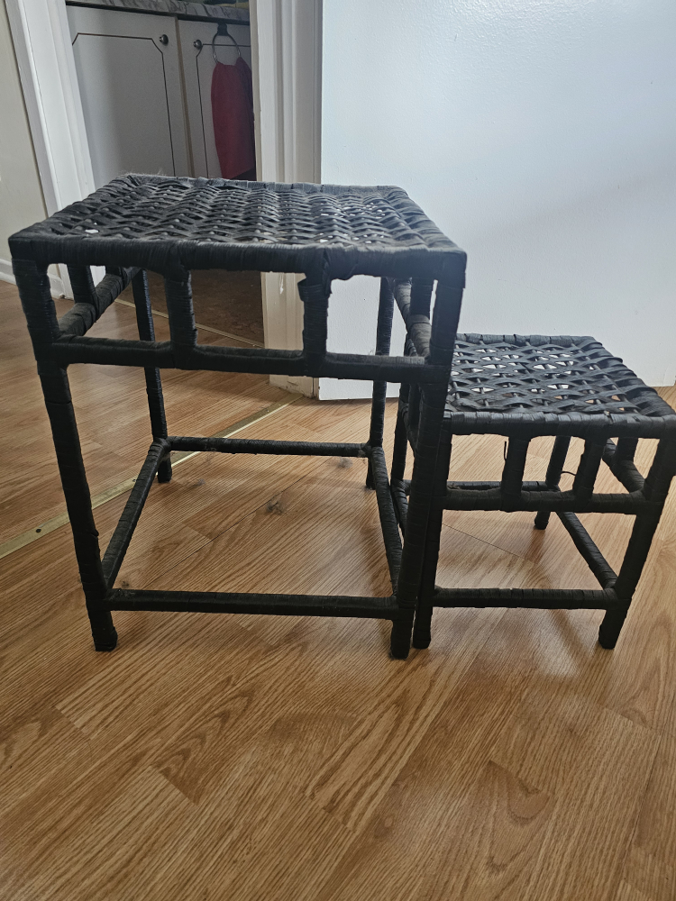 1 / 21 / 2Buy & SellSet of Two Black Woven StoolsSet of Two Black Woven Stools$18Two black woven stools, one larger than the other. Square tops and simple frames. Perfect for extra side table.WHERE TO MEETSouth KeysView MapSELLERverifiedElisabethBlossom Park812 reviews0 chats·1 favorites·36 viewsSEND CHAT TO SELLERHi Elisabeth! I’m interested in your listing.Hi Elisabeth! I’m interested in your listing.Get the Karrot app to chatSign In to chat