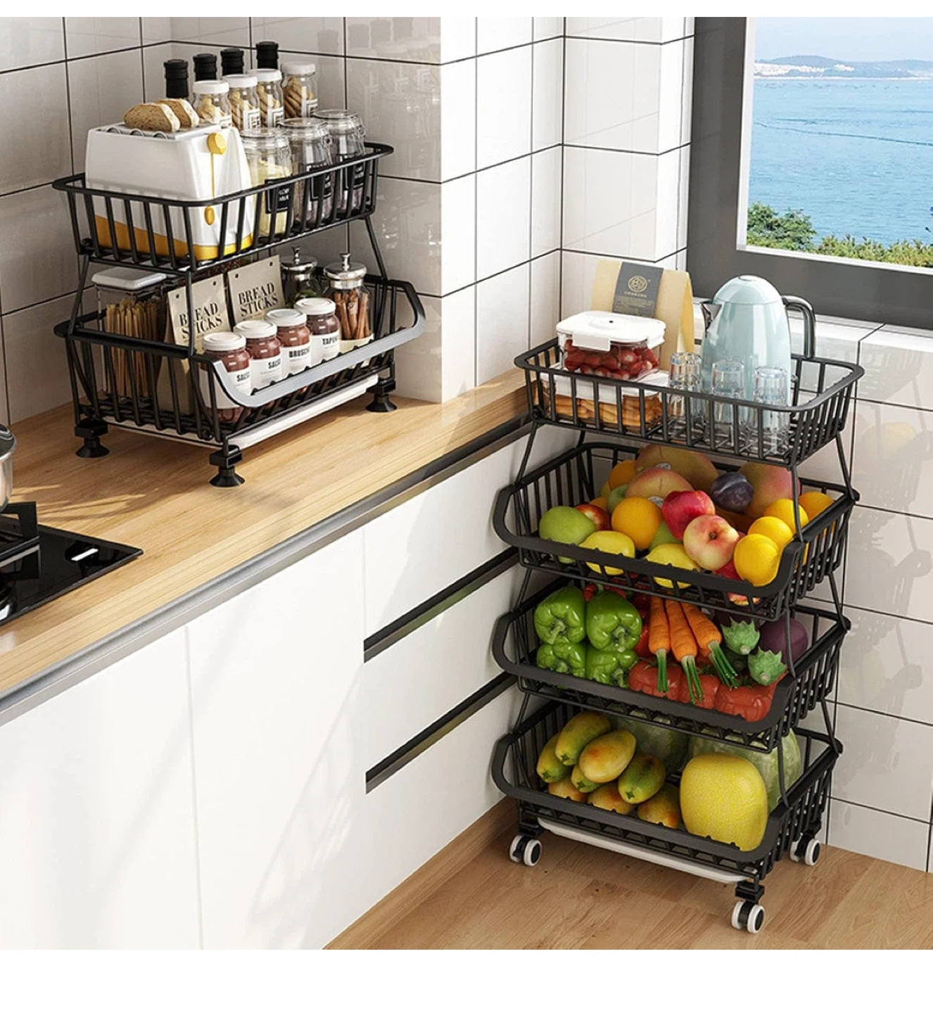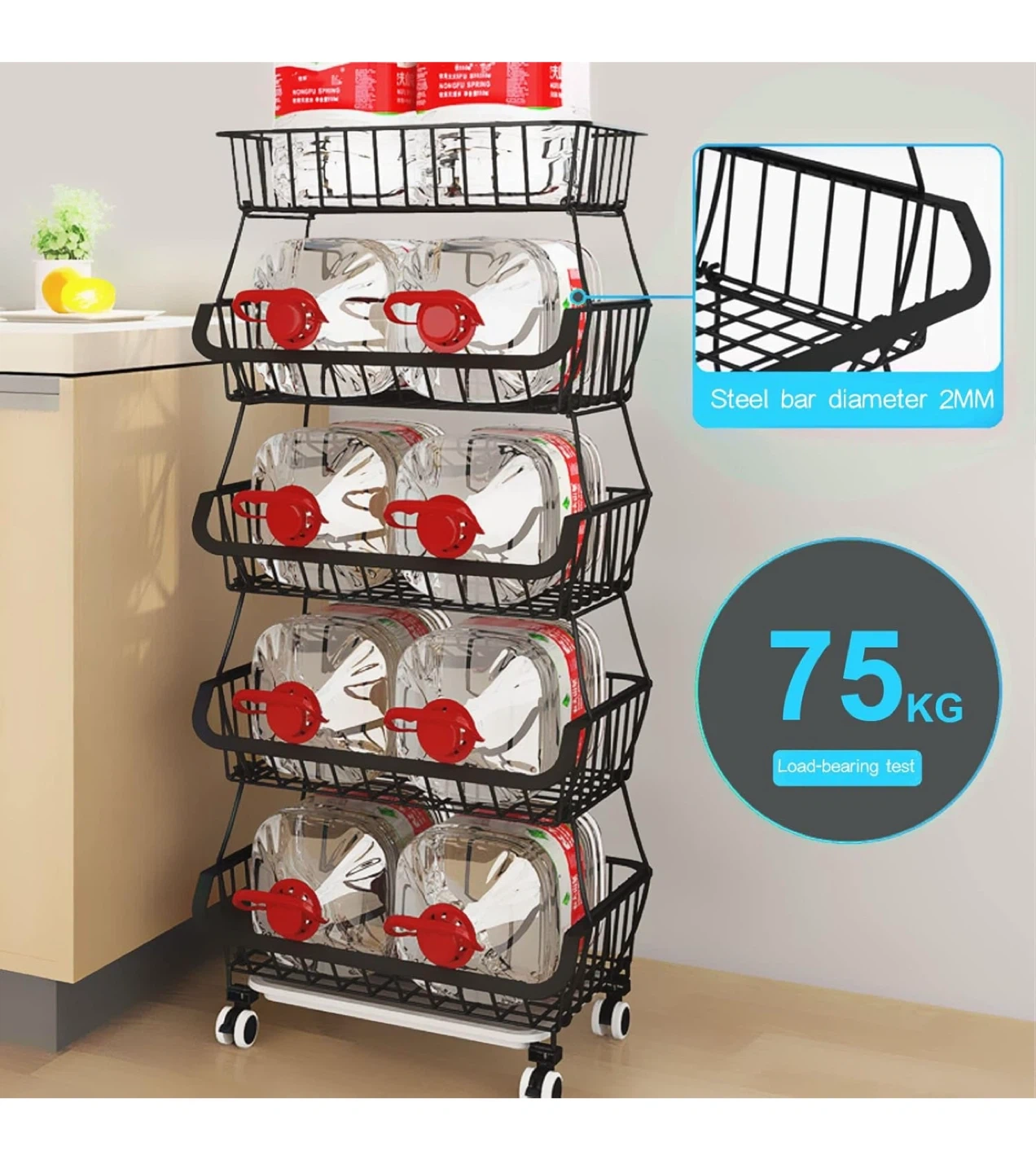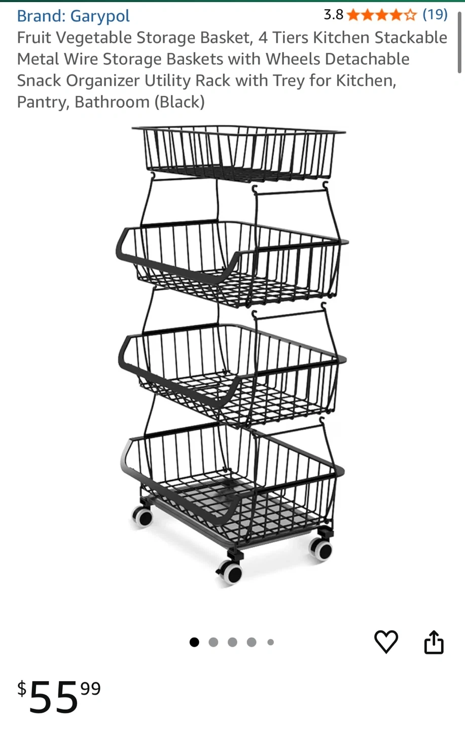 Check out this sturdy metal storage basket! It's a Garypol 4-tier design with rolling casters, so it's easy to move around. The baskets are made of bold carbon steel and can hold up to 75kg. Perfect for the kitchen, pantry, or bathroom!