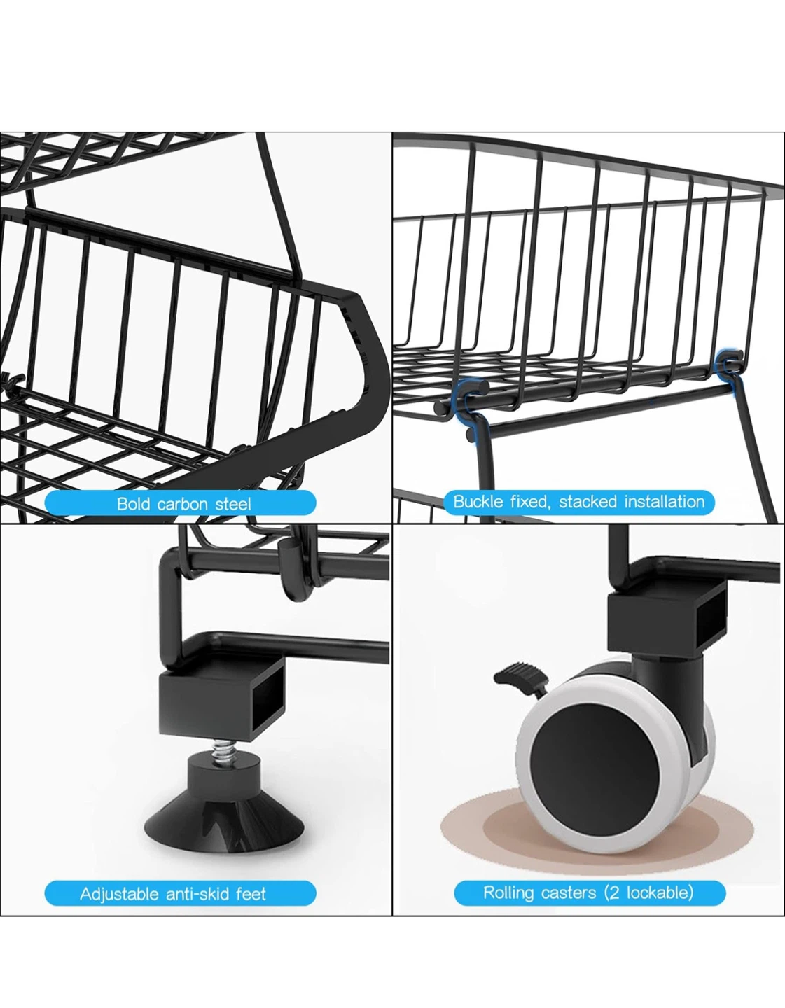 Check out this sturdy metal storage basket! It's a Garypol 4-tier design with rolling casters, so it's easy to move around. The baskets are made of bold carbon steel and can hold up to 75kg. Perfect for the kitchen, pantry, or bathroom!
