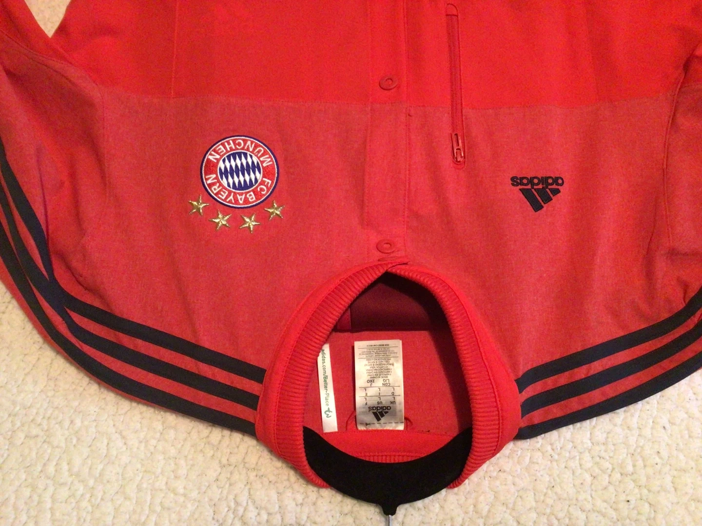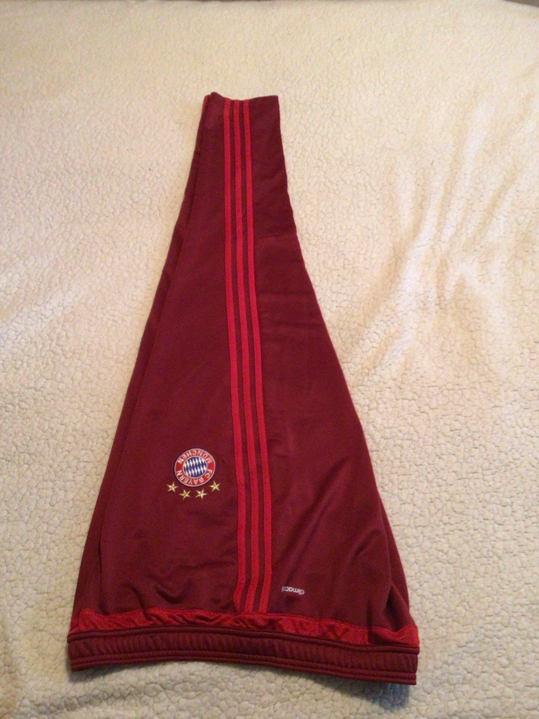 Brand new, never worn. Great Adidas FC Bayern Munich track pants and jacket . Size L. Climacool material. Jacket has zippered pockets. Great item for Adidas soccer enthusiasts and fans. Very comfortable for your training routine as well. Got it as a gift and kept in a closet for some time.