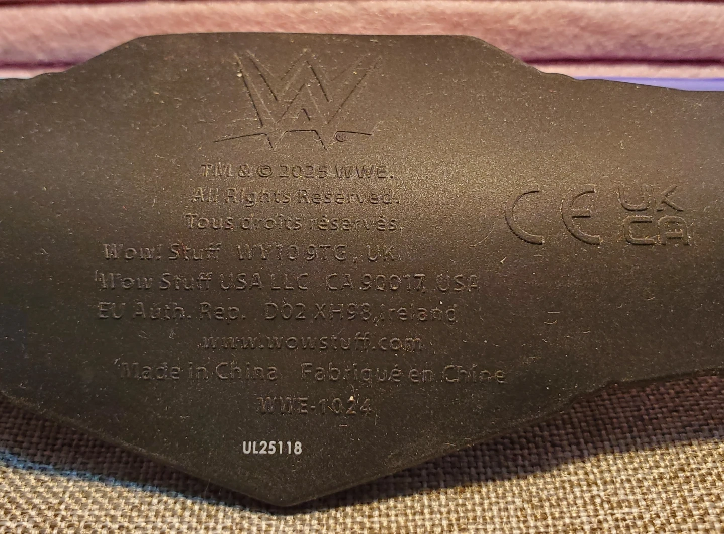 This is a WWE Undisputed Championship 2013 Belt slap bracelet from Series 2. It's made of plastic and features the WWE logo and championship design. This slap band would be fun for any wrestling fan to wear or collect!