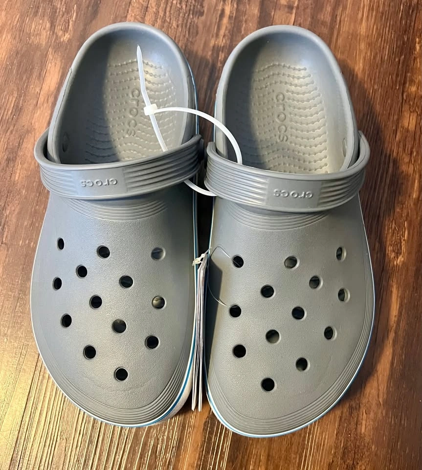 Brand new Crocs Off Court clogs in grey. Never worn, still attached with original tags. Size: Men’s 7 / Women’s 9 (M7/W9). Pickup in a public location.