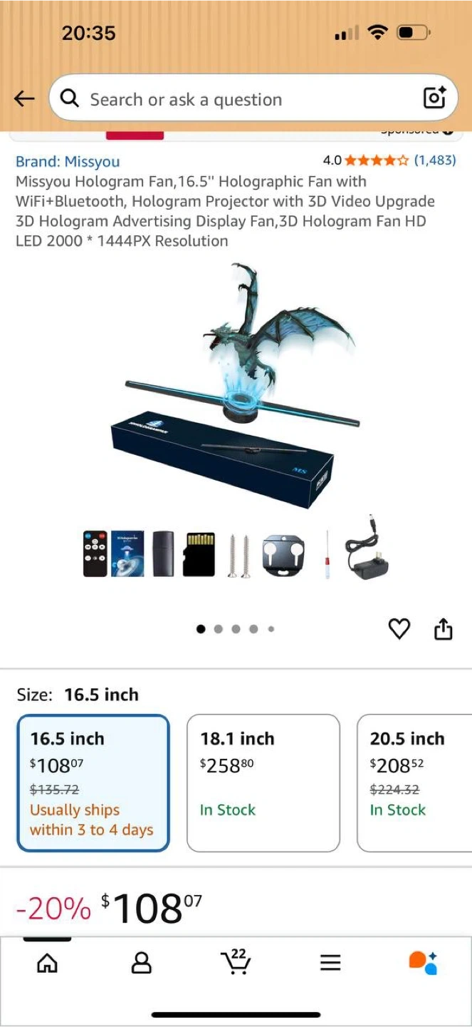 π₯ Missyou 16.5β Hologram Fan Projector (Open Box) π₯