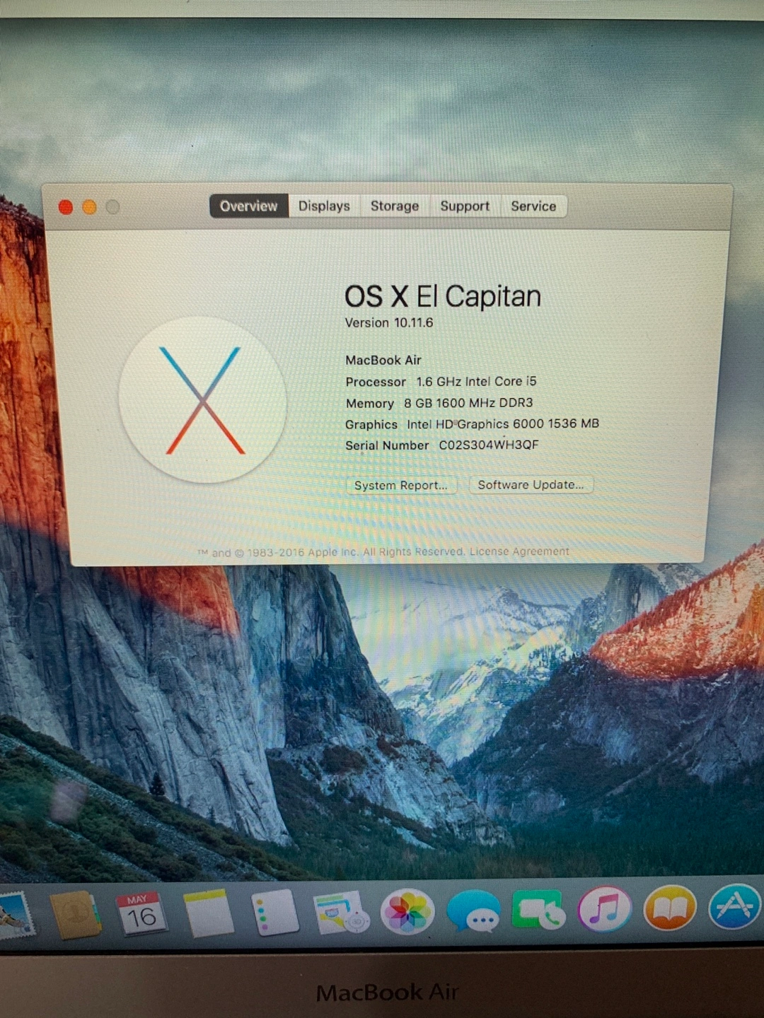 MacBook Air 1.6GHz i5 8GB RAM 250GB SSD