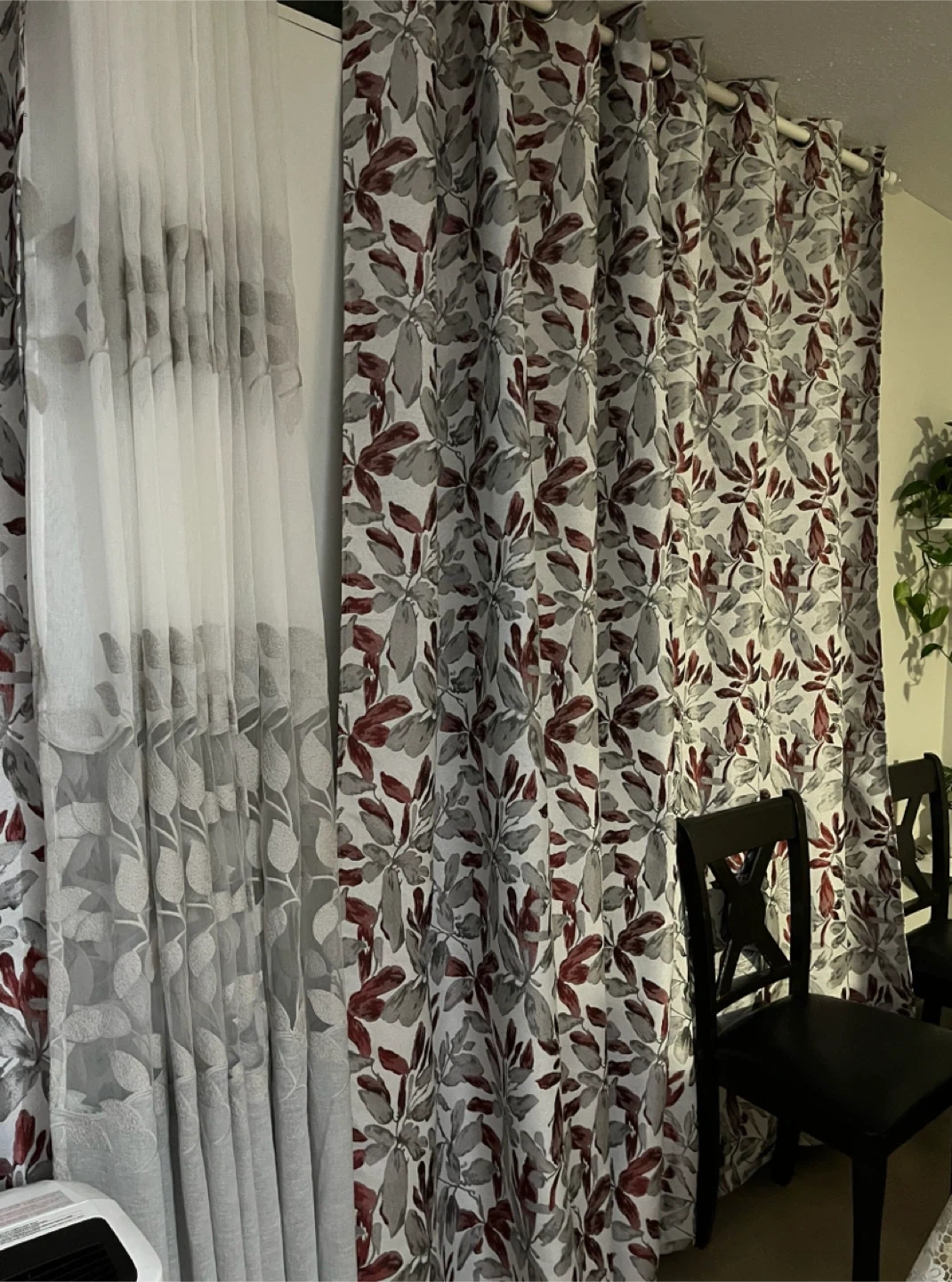 2 grey/red floral panels that block out the sunlight, three sheer/grey panel (can use as liner). 5 total pieces.