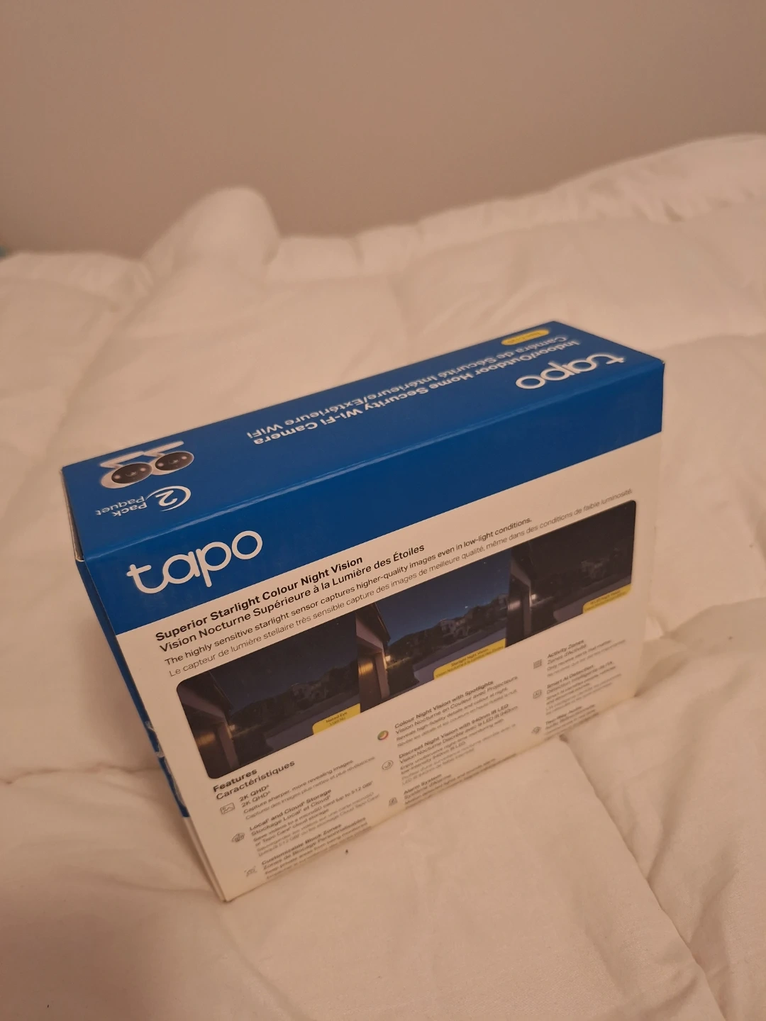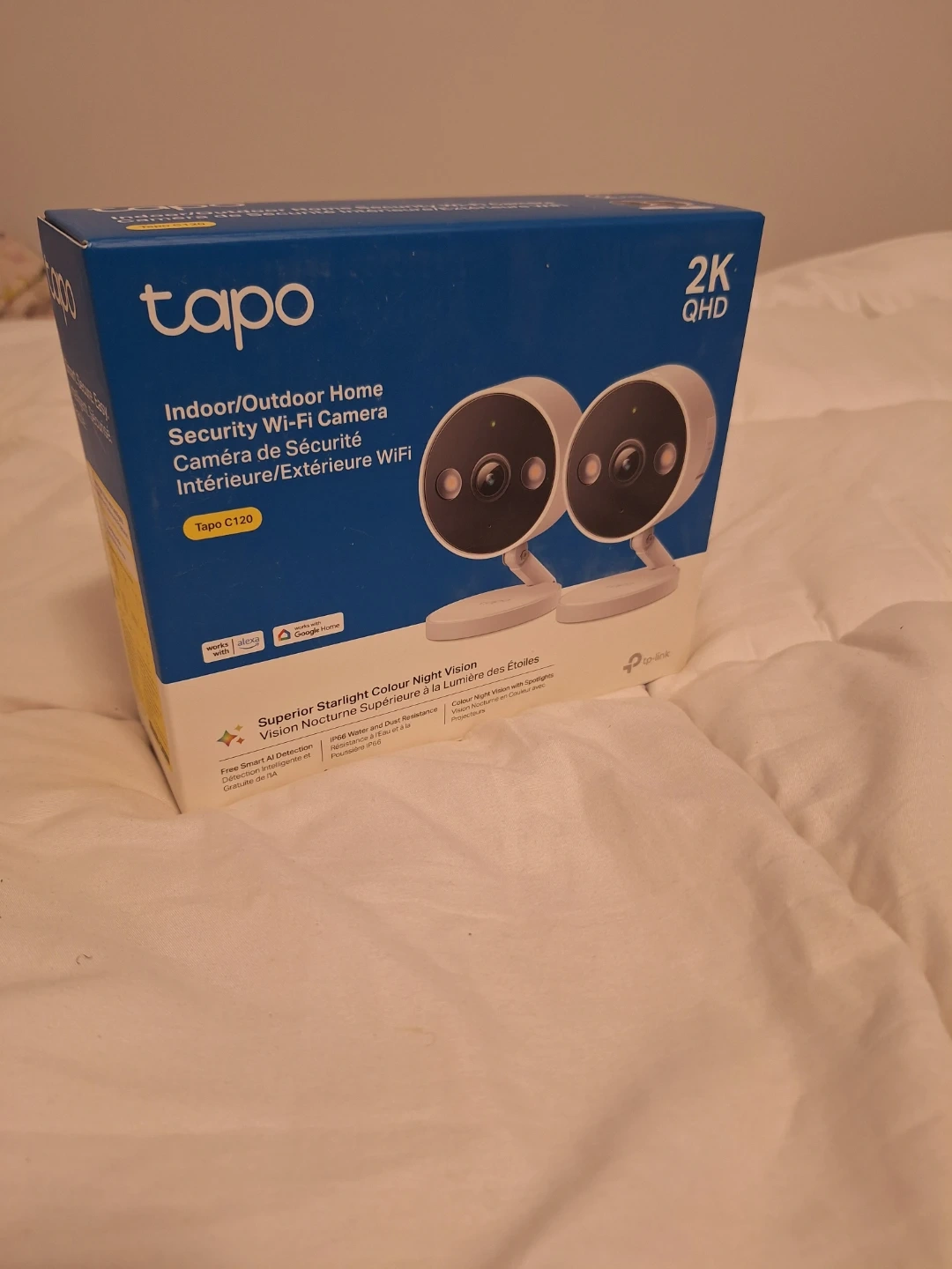 This Tapo camera offers 2K QHD resolution for clear video. It features superior starlight colour night vision and free smart AI detection. It's suitable for both indoor and outdoor use.