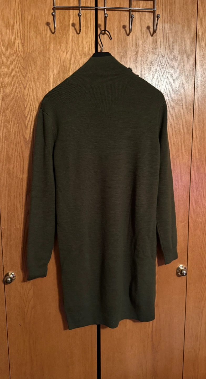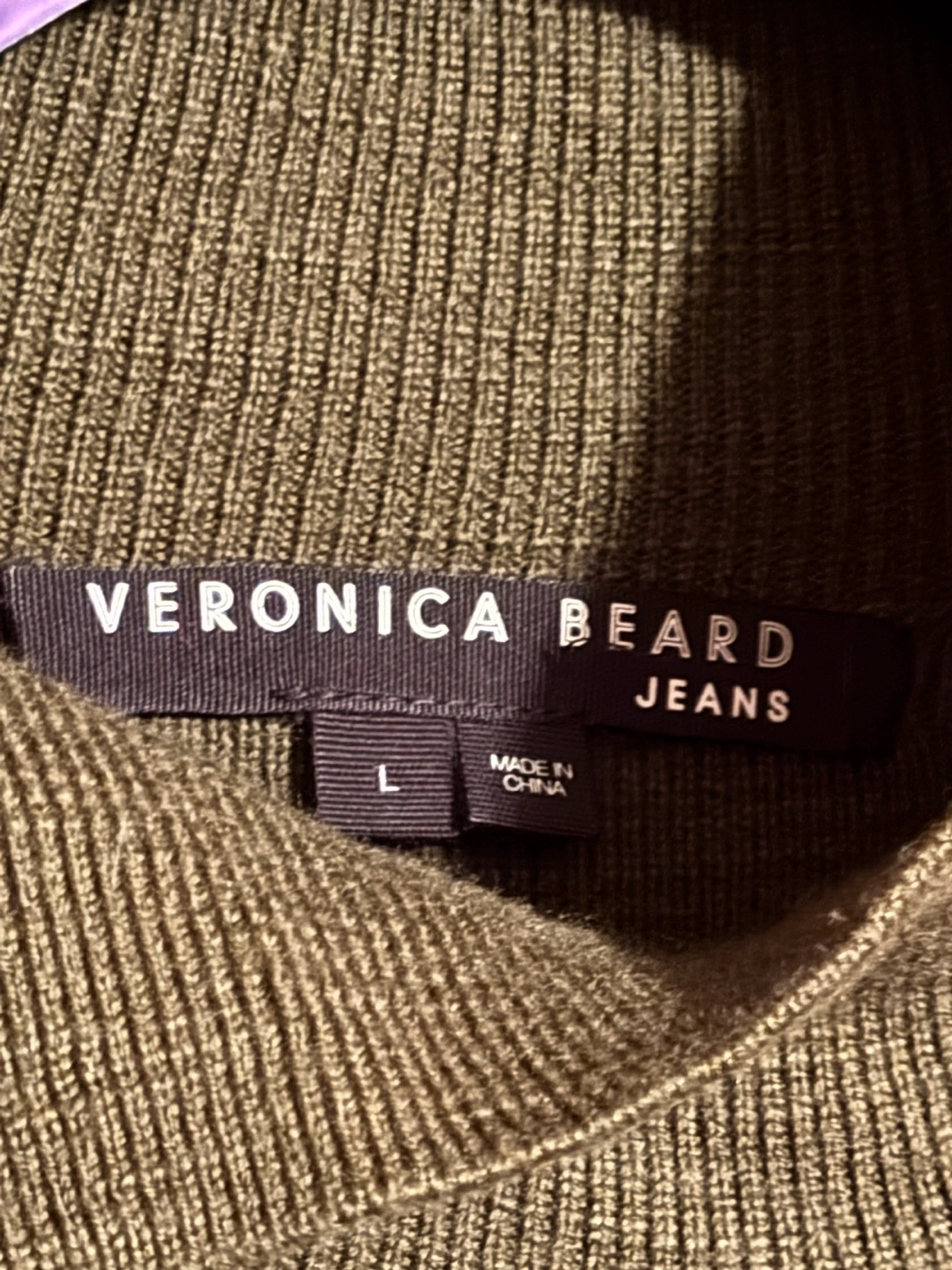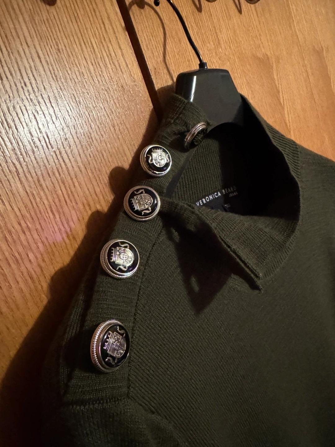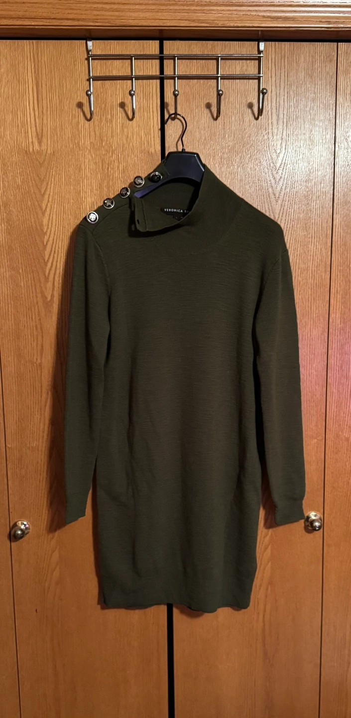 Veronica Beard Jeans sweater dress. Olive green colour. Size large. Mock neck. Shoulder buttons. Long sleeves.