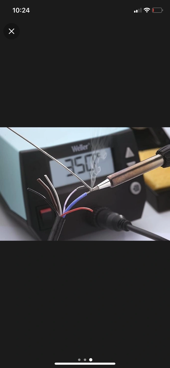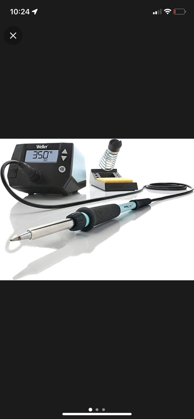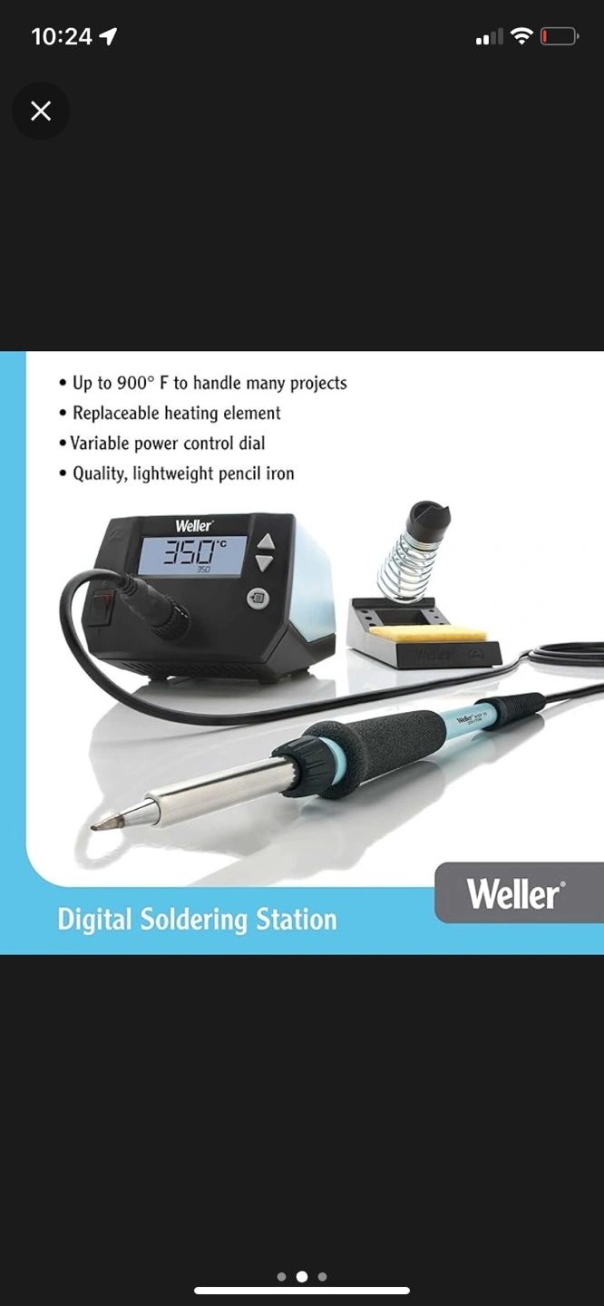 High-quality soldering iron. Features a replaceable heating element and variable power control. Lightweight pencil iron. Reaches up to 900Β°F.
