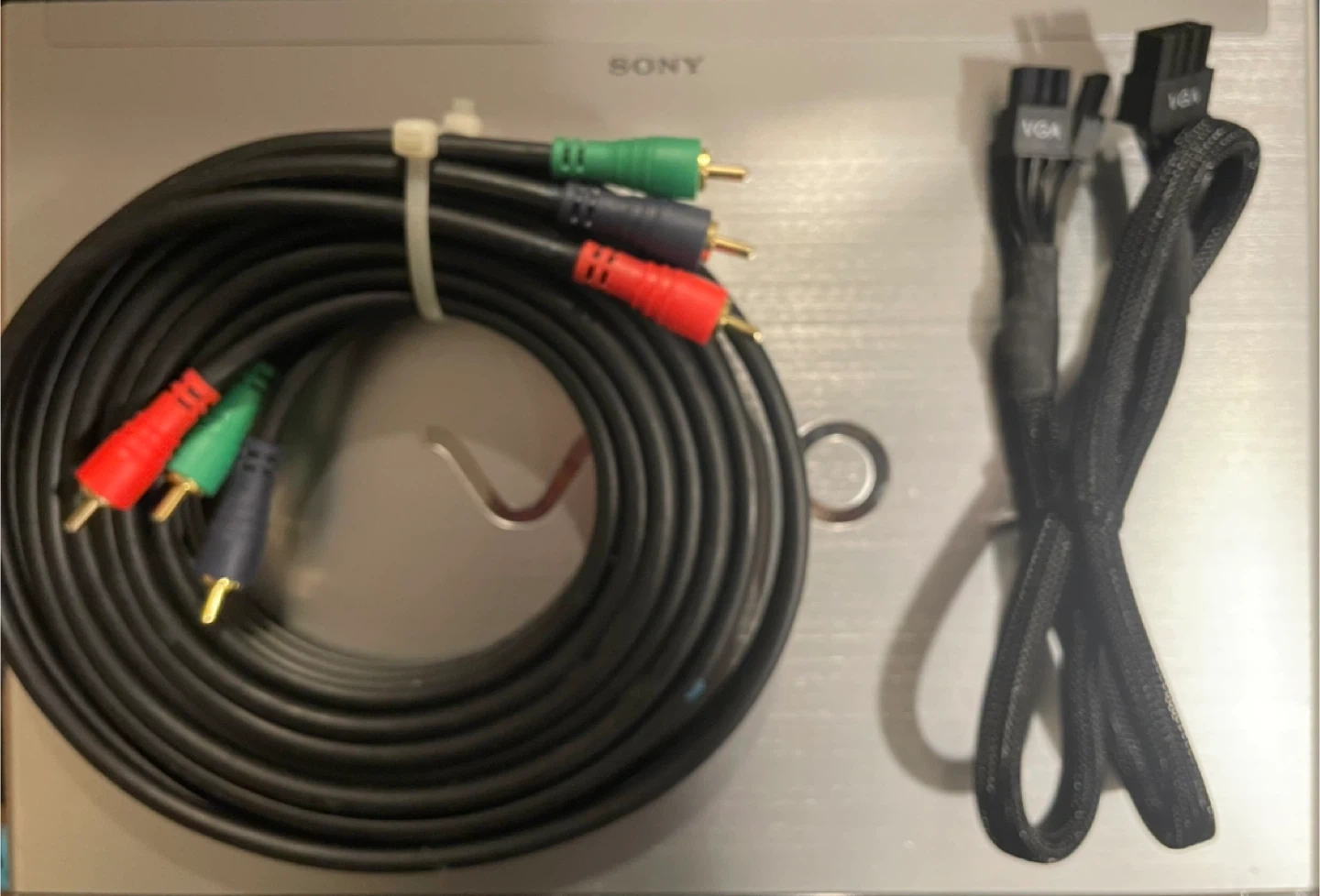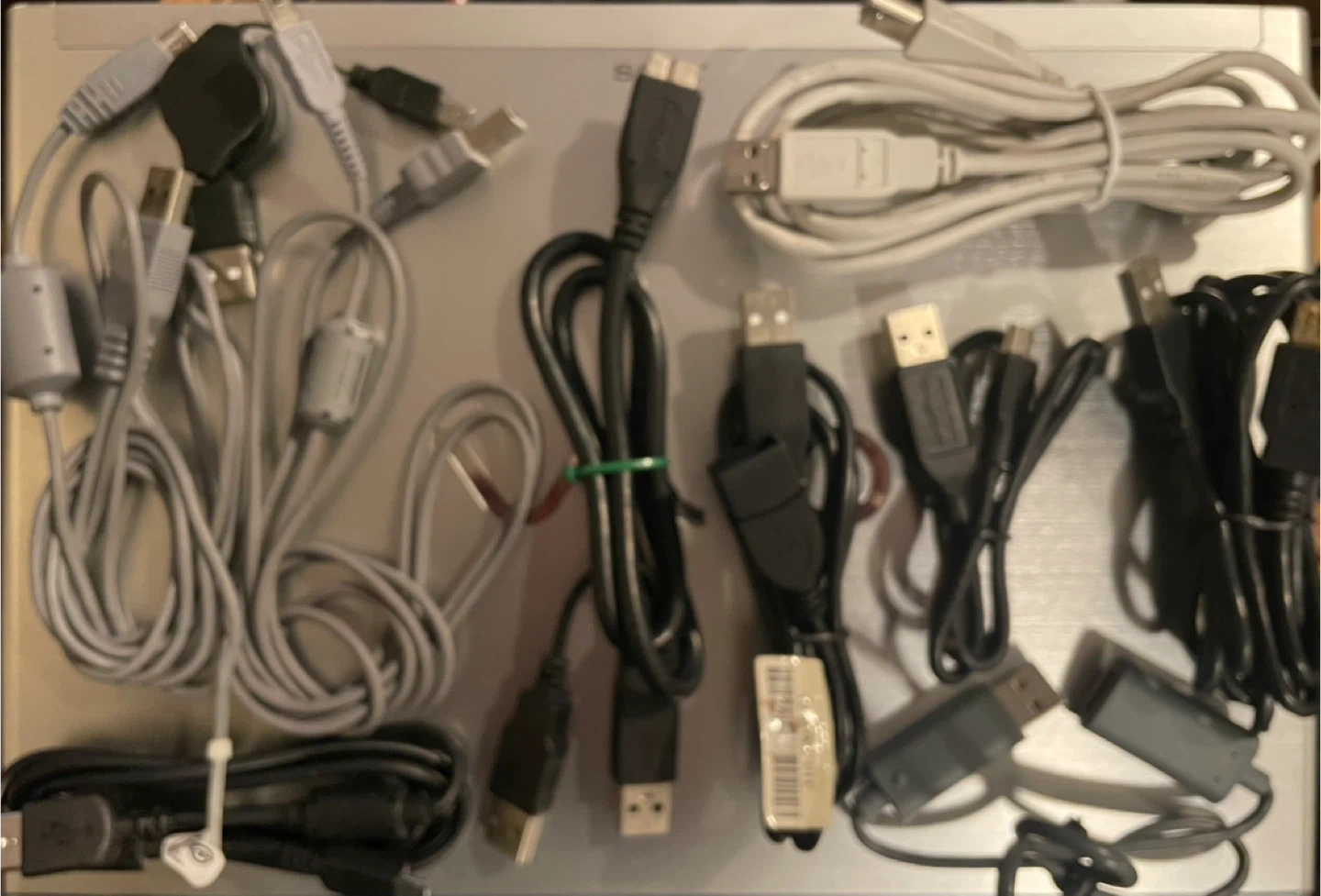 This is a collection of various audio and video cables, including HDMI, VGA, RCA, and adapter cables. These cables are used to connect different electronic devices for sound and picture transmission. They're great for setting up home theatre systems or connecting gaming consoles.